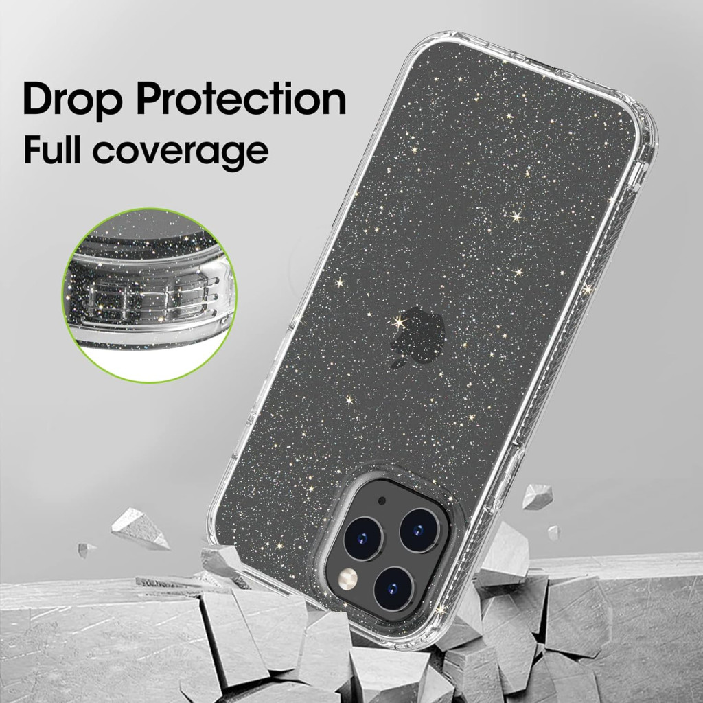 - Trblietavý dizajn: Priehľadný TPU materiál s trblietavými detailmi