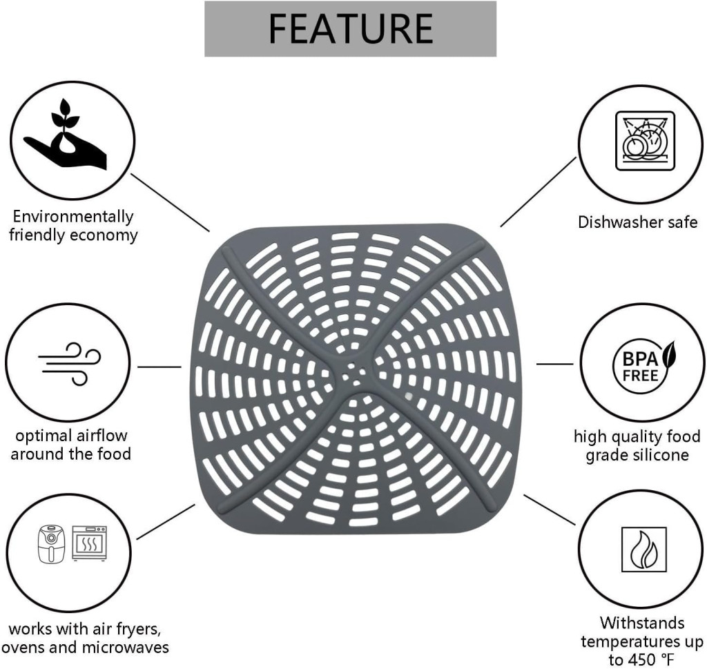A szilikon forma sokoldalúan alkalmazható a konyhában. Ideális forró levegős fritőzéshez, ahol megvédi az ételeket a közvetlen hőtől és biztosítja az egyenletes sütést. Használható gőzöléshez, hagyományos sütéshez, és még mikrohullámú sütőben is. Az ételek integritása és szépségének megőrzése mellett, a forma megakadályozza az étellé tapadást a kosár aljához, így az ételek könnyebben eltávolíthatók és szebben maradnak.