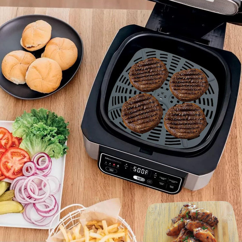 AUMUA Szilikon Forma Ninja Foodi AG301EU Légfriteuzhez, Tapadásmentes Újrahasználható Betét 21x22cm Szürke