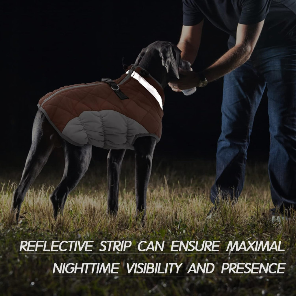 - Vízálló és meleg anyag: A kabát külső felülete vízálló anyagból készült, amely megvédi kutyáját az esőtől és a hótól. A belsejében lévő polár fleece bélés puha, meleg és kényelmes, megakadályozva a hőveszteséget.