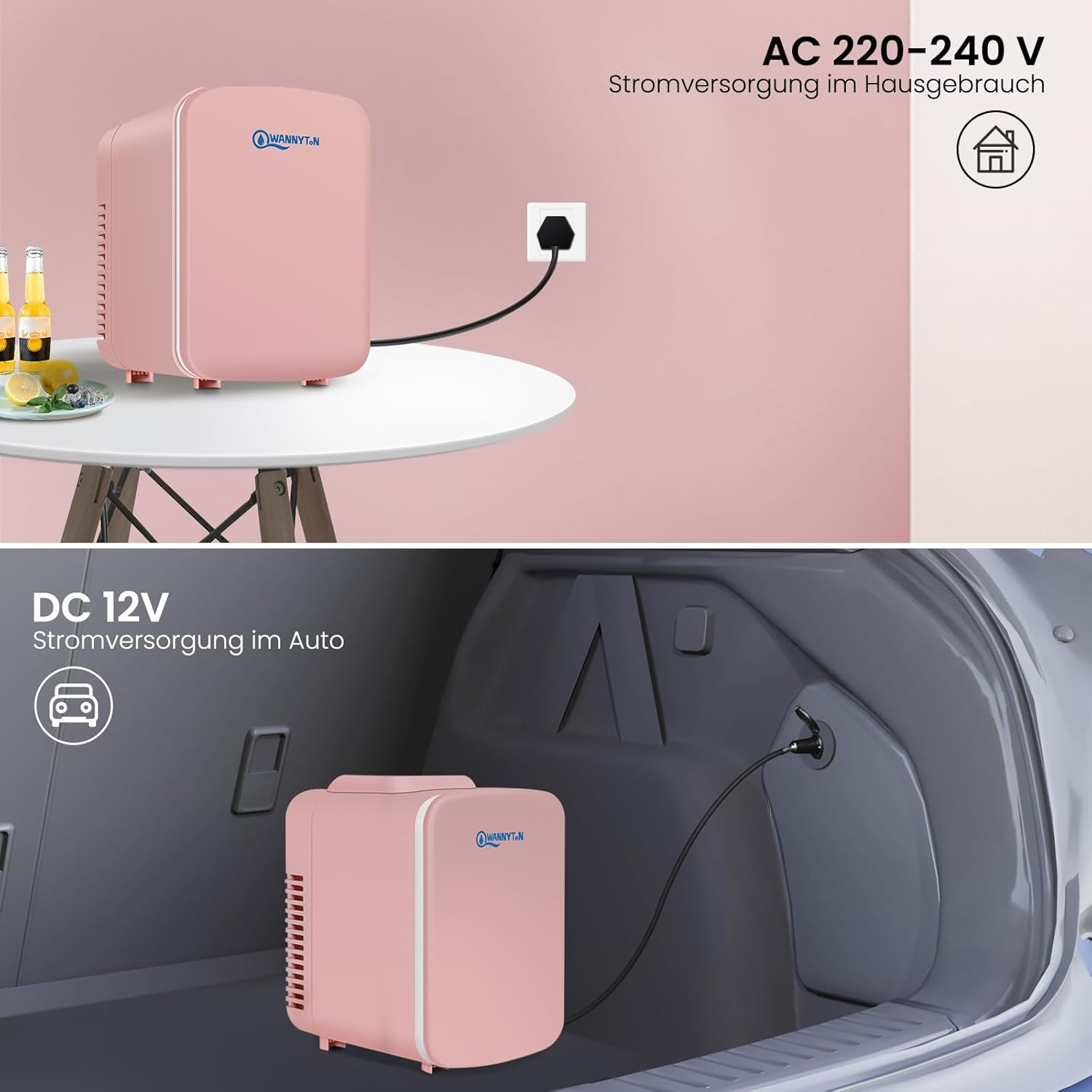 A WANNYTON mini hűtőszekrény nem csupán egy tárolóeszköz, hanem egy lifestyle-termék, amely megkönnyíti a mindennapi életet. Az innovatív kettős funkció lehetővé teszi, hogy hideg italokat és meleg ételeket egyaránt tároljon. Az AC és DC tápellátás biztosítja, hogy bárhol használható legyen, legyen szó otthonról, autóról vagy kempingezésről.