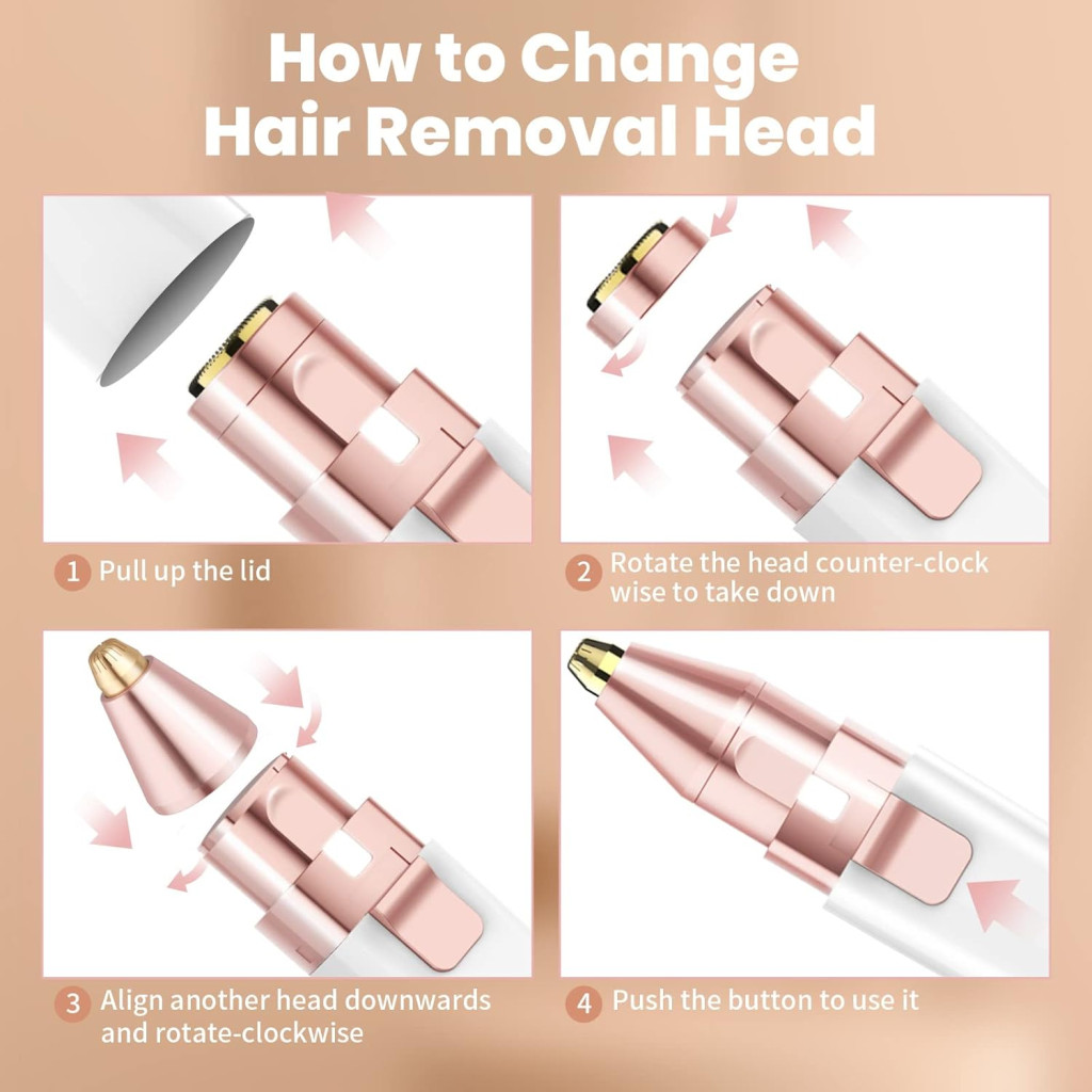 - Riešenie 2 v 1: Obsahuje dve vymeniteľné hlavice – precíznu hlavicu na obočie, nos a uši, ako aj väčšiu okrúhlu hlavicu na tvár, fúzy a oblasť podpazušia