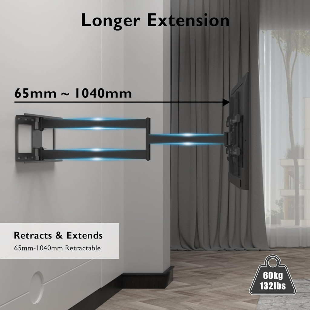 BONTEC TV Fali Tartó 32-75" LCD/LED/OLED Képernyőkhöz - 1040 mm Extra Hosszú Karral, 60 kg Teherbírással, Dönthető, Forgatható, VESA 600x400