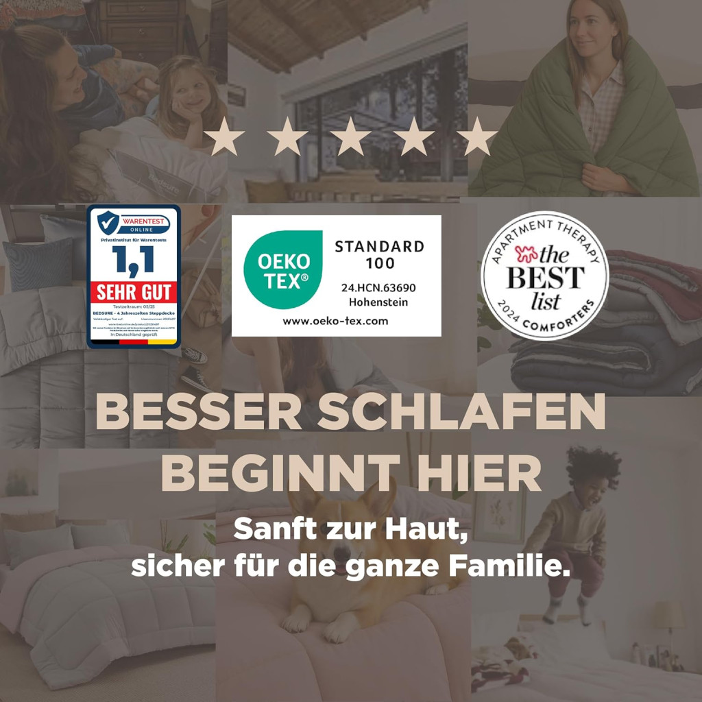 A BEDSURE bettdecke nem csupán egy alvási takaró - ez egy befektetés az egészséges és kényelmes alvásba. Az Oeko-TEX tanúsítás garantálja, hogy a termék nem tartalmaz káros vegyi anyagokat, ami különösen fontos az allergiaszenvedőknek és az érzékeny bőrűeknek.