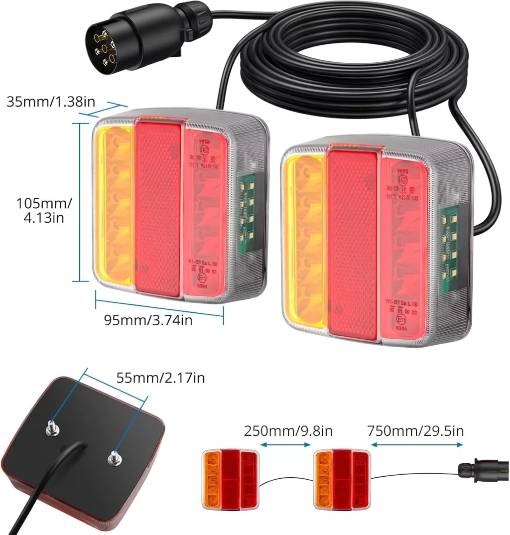 AUTOUTLET Sada zadných svetiel na príves 18 LED, 7,5m kábel, 7-pólový konektor, E11