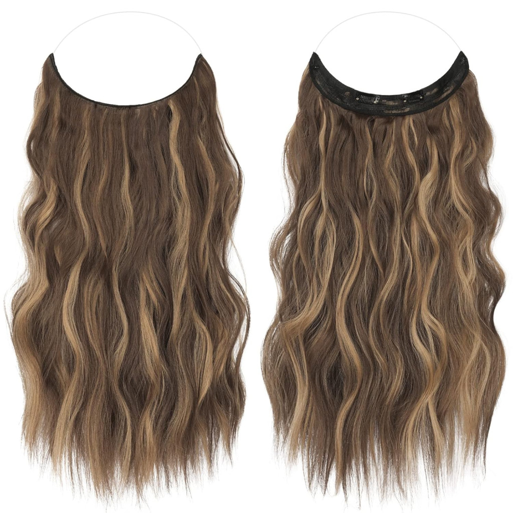 FESHFEN dlhé vlnité nadpájané vlasy, 50 cm, medovo-svetlohnedé, syntetické