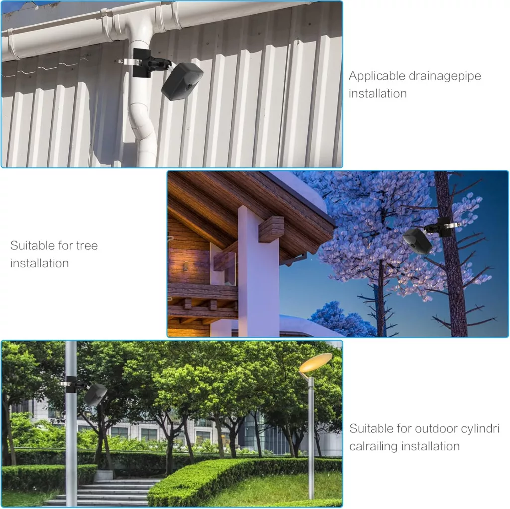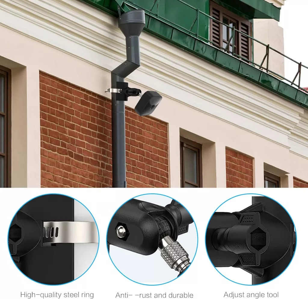 Držiak je možné namontovať na rúry a stĺpy rôznych priemerov, v rozsahu od 5 cm do 20 cm. Táto flexibilita vám umožní namontovať kameru takmer na akýkoľvek odkvap, zvodovú rúru alebo stĺp.