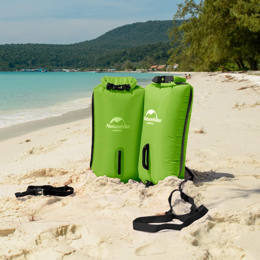 A Naturehike vízálló táska egy innovatív megoldás azok számára, akik szeretik az aktív vízisportokat és kültéri kalandokat. Ez a 28 literes kapacitású táska nem csupán egy szokványos vízálló tárolóeszköz, hanem egy multifunkcionális kiegészítő, amely úszógyűrűként is funkcionál. Az állítható övvel könnyedén rögzíthető a testhez, biztosítva, hogy értékes tárgyaid biztonságban maradjanak, miközben a vízben vagy száraz terepen mozgolódsz.