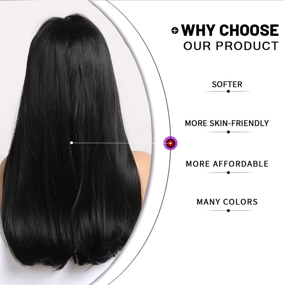 Esmee Dlhá Rovná Čierna Parochňa pre Ženy - Prirodzený Vzhľad, s Ofinou Prehľad Produktu
