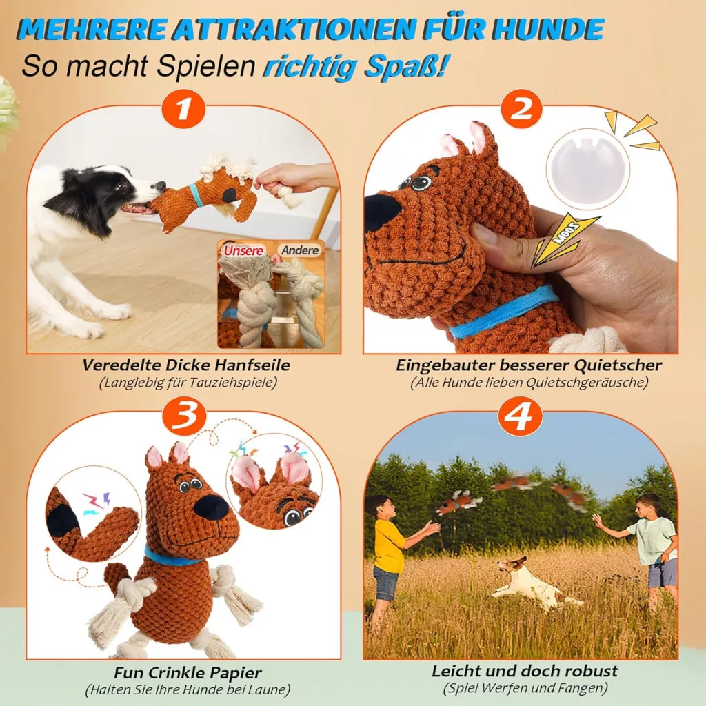 Az interaktív húzójáték funkció lehetővé teszi, hogy minőségi időt töltsön kutyájával, míg a csikorgó hangok és az egyenetlen felület biztosítják a szellemi és fizikai stimulációt. A természetes pamut anyag biztonságos és puha, így nem kell aggódnia az Ön kedvenc kutyájának egészsége miatt.
