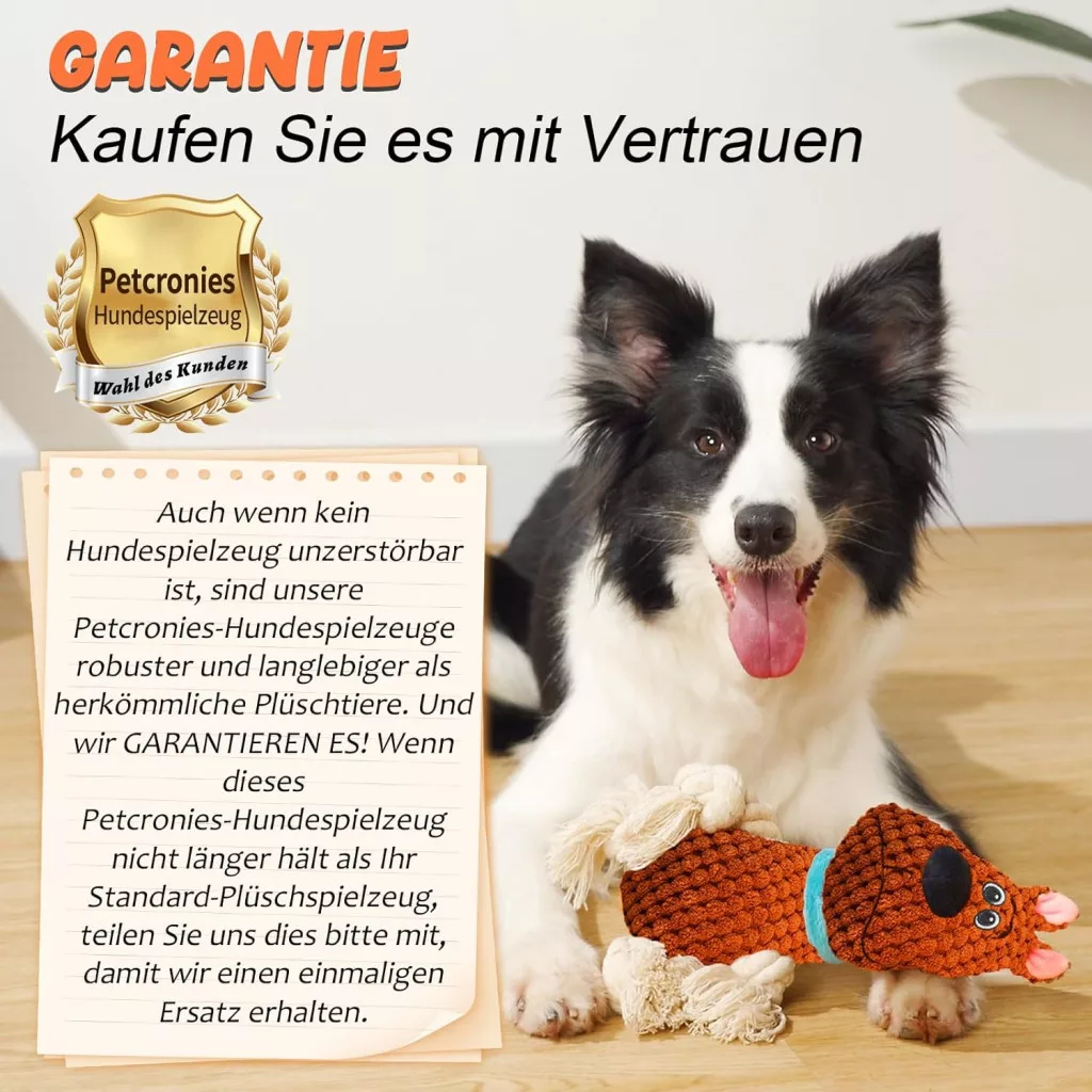 A Petcronies kutyajáték egy sokoldalú, interaktív játék, amely kifejezetten nagy és közepes méretű kutyáknak, valamint kölyköknek tervezték. Ez a prémium minőségű plüss játék ötvözi a szórakoztatást, a fogápolást és az érzelmi támogatást, hogy teljes körű megoldást nyújtson az Ön kedvenc kutyájának.