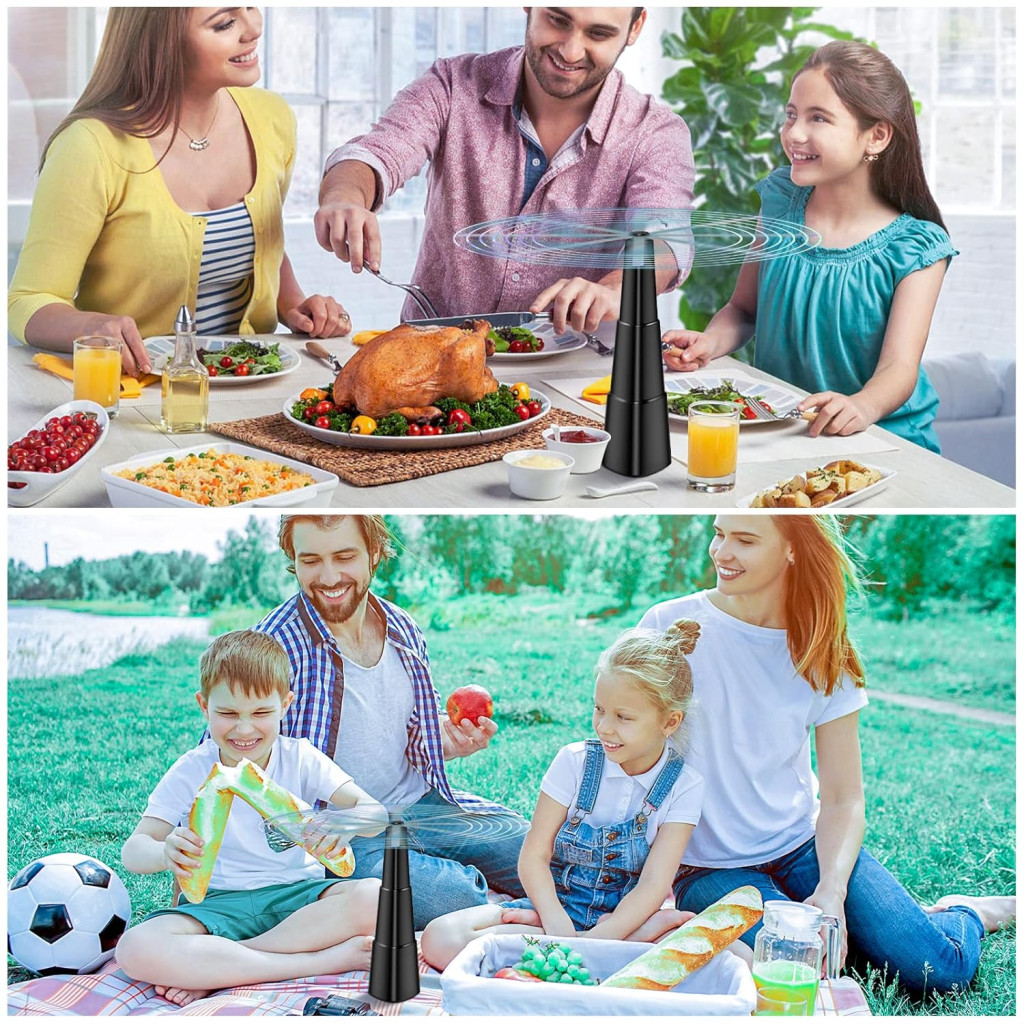 A légyfogó ventilátor egy innovatív megoldás azoknak, akik szeretnék élvezni a kültéri étkezéseket anélkül, hogy az irritáló rovarok zavarná őket. Ez a 2 darabos csomag két teljes körű, töltölthető légyfogó ventilátort tartalmaz, amelyek elegáns fekete dizájnnal rendelkeznek és diszkréten működnek. A termék nem csak praktikus, hanem dekoratív elem is az asztalon, amely egyidejűleg hatékonyan tartja távol a legyeket, szúnyogokat és más repülő rovarokat.
