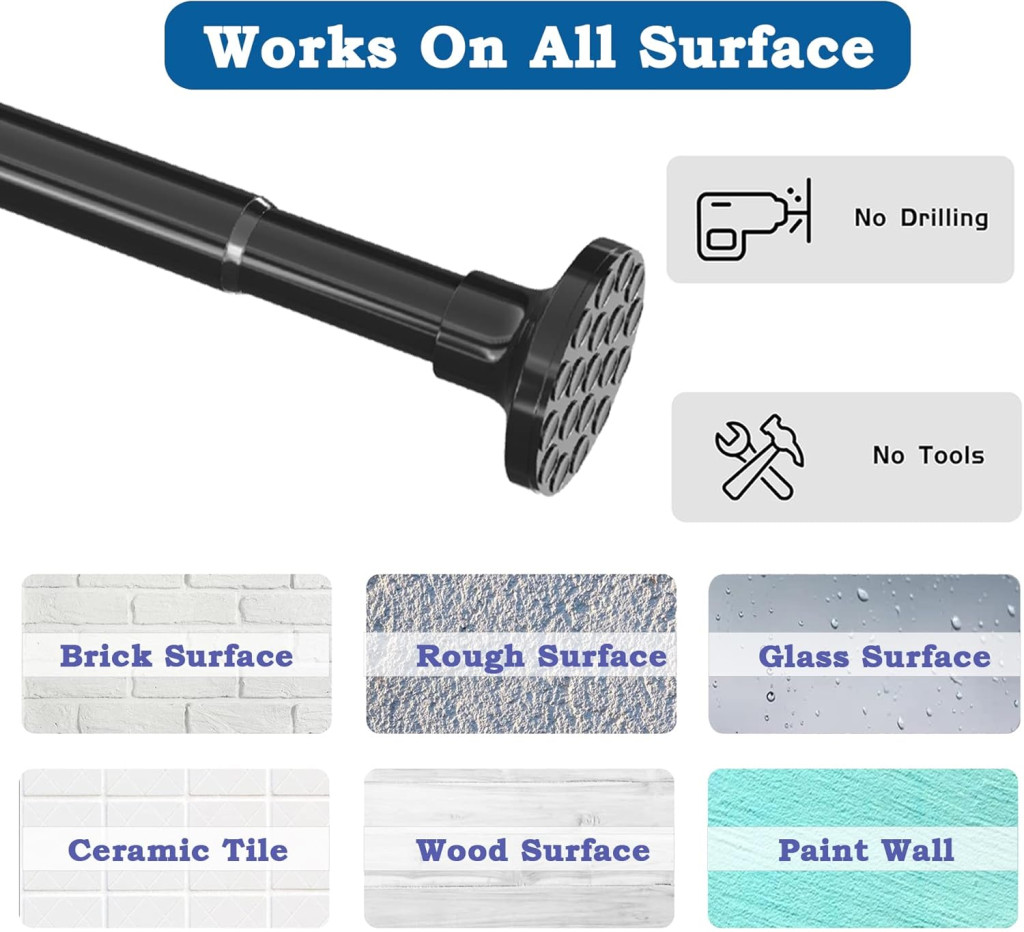 Aiitomg Teleszkópos Zuhanyfüggöny Rúd 90-140 cm Fekete Csúszásmentes