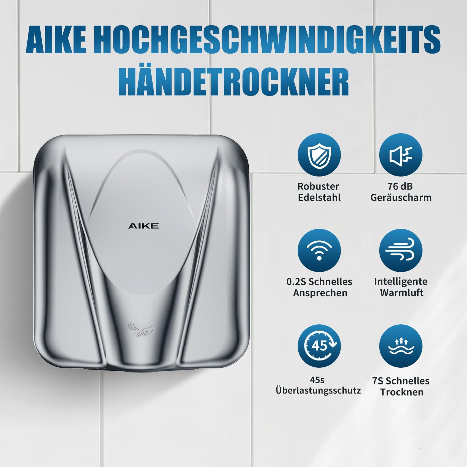 Az AIKE Elephant AK2812 a professzionális kézszárítók között az egyik legjobb választás. A 105 m/s szélsebesség garantálja a gyors szárítást, míg a rozsdamentes acél ház biztosítja a hosszú élettartamot. A készülék ideális magas forgalmú közterületekre, ahol a megbízhatóság és a higiénia kritikus fontosságú.