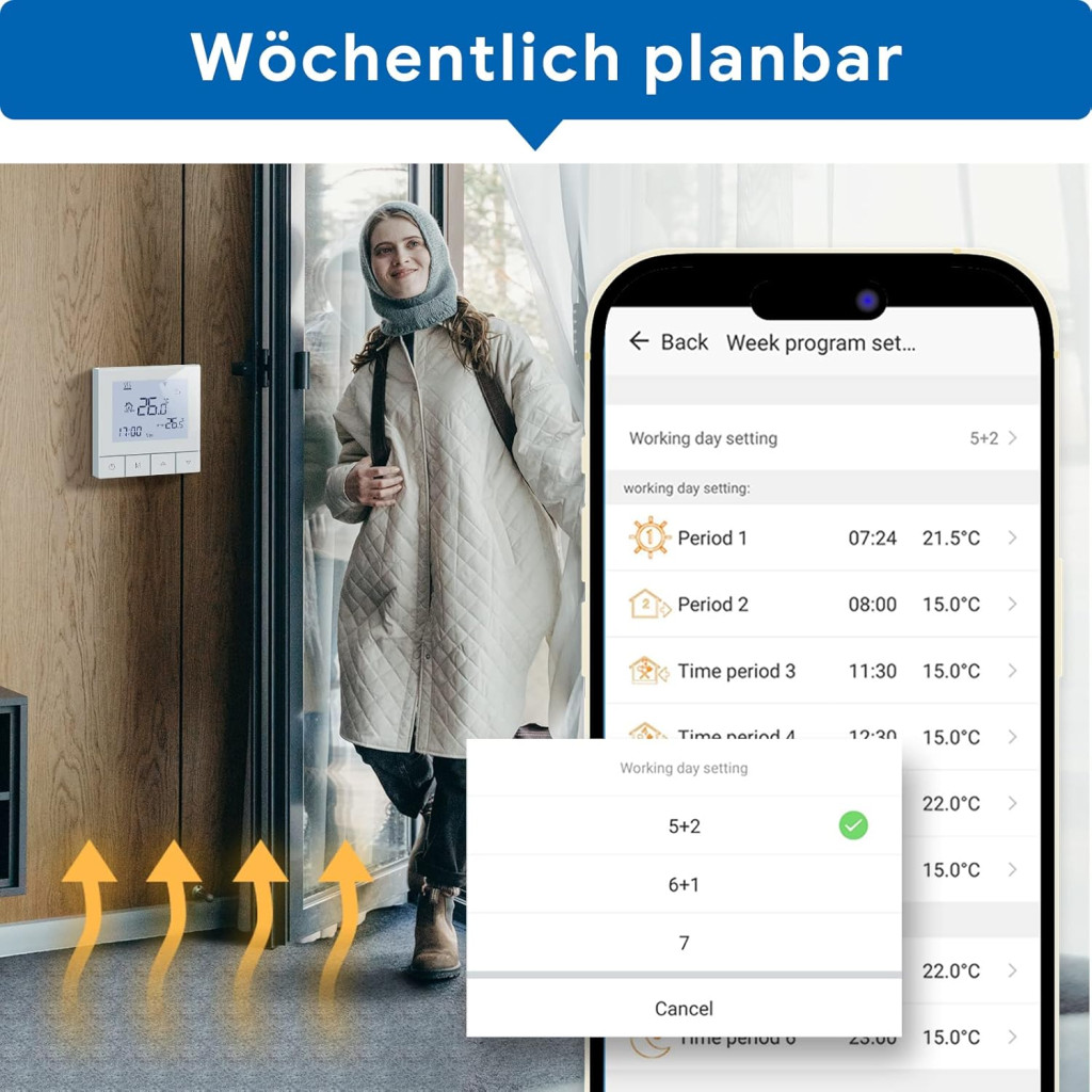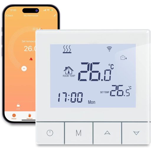 Najvýraznejšou vlastnosťou termostatu je 2.4 GHz WiFi pripojenie, ktoré umožňuje diaľkové ovládanie odkiaľkoľvek na svete. Prostredníctvom aplikácií Tuya a Smart Life je možné ho ovládať zo zariadení iOS aj Android, takže sa nikdy nemusíte obávať, že prídete do studeného domova.