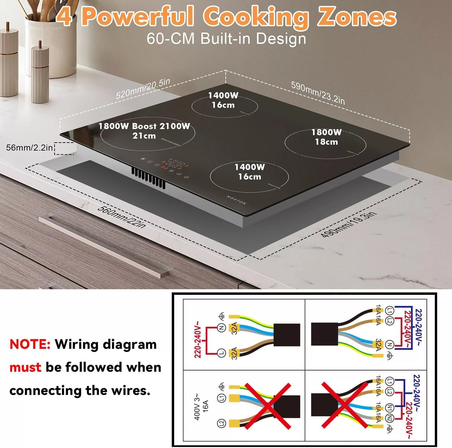 A NOXTON indukciós főzőlap egy modern, 4 zónás beépített megoldás, amely a legmagasabb szintű konyhatechnológiát ötvözi az egyszerű kezelhetőséggel. Ez a 60 cm-es készülék 6400 W teljesítménnyel rendelkezik, és kifejezetten azoknak tervezték, akik értékelik a gyors, hatékony és biztonságos főzést. Az érintésvezérlés és a Power Booster funkció lehetővé teszi, hogy a legkülönfélébb ételeket könnyedén elkészítse, legyen szó gyors felforralásról vagy lassú párolásról.