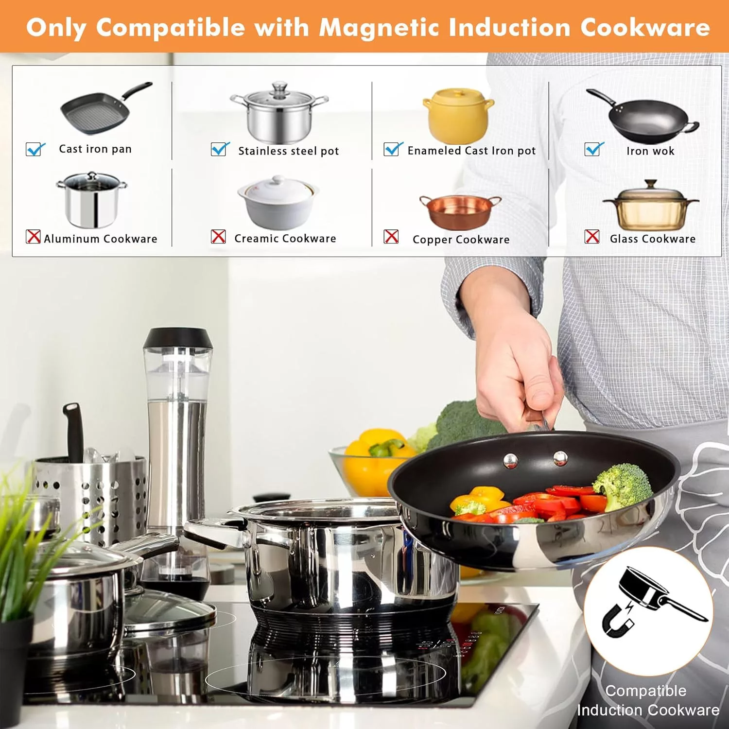 - Csak mágneses edényekkel kompatibilis