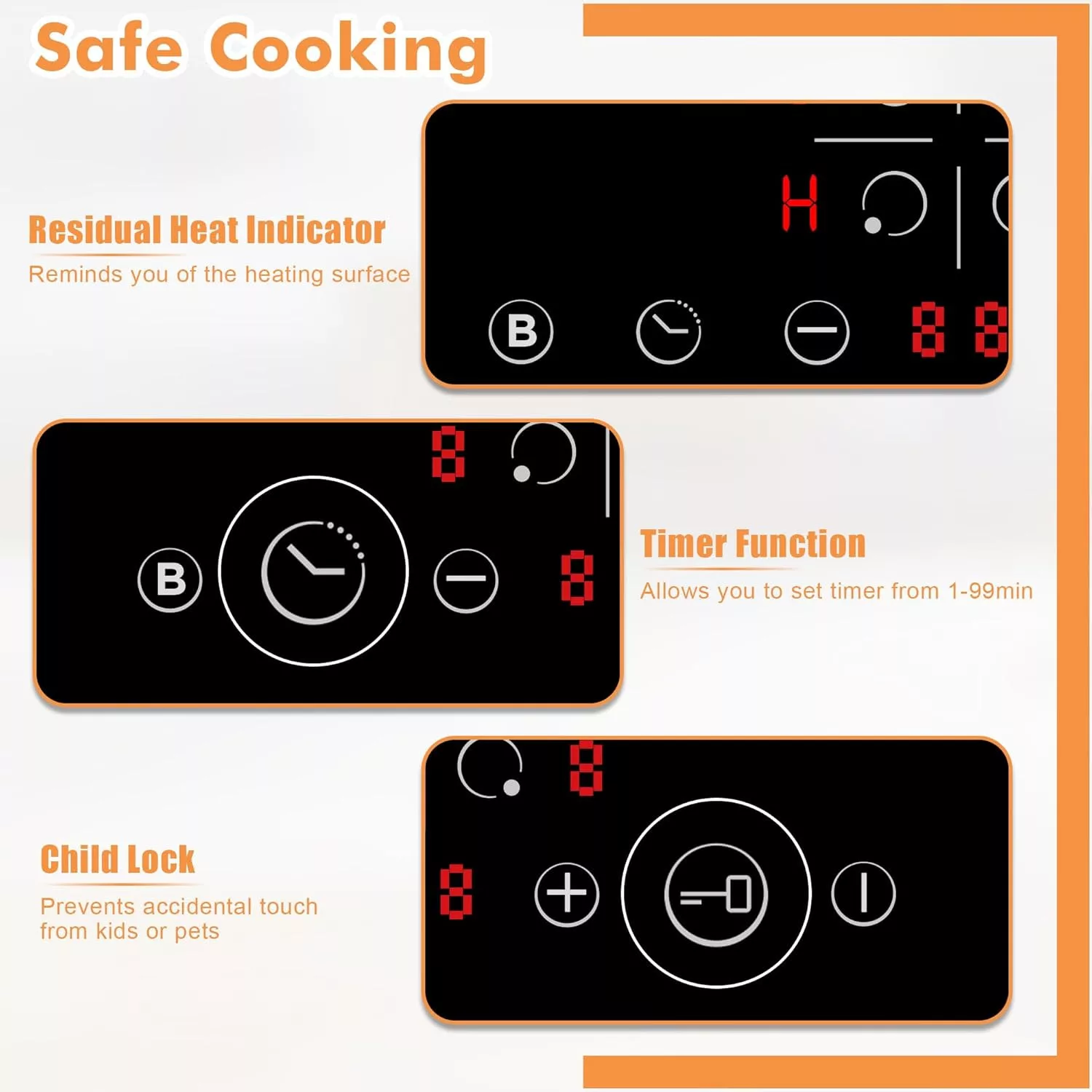 Ez az indukciós főzőlap számos olyan funkcióval rendelkezik, amely a mindennapi főzést egyszerűbbé és biztonságosabbá teszi:
