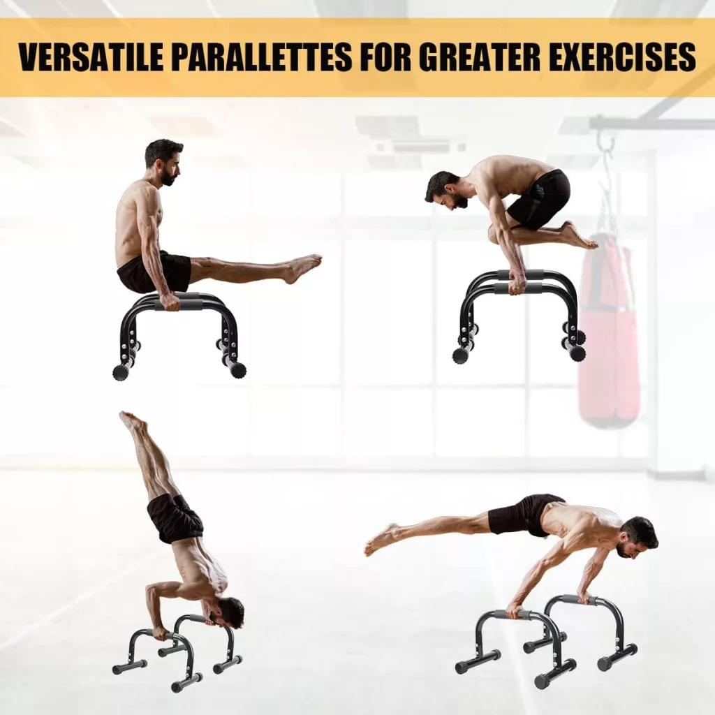 KingMile Parallettes sú mimoriadne všestrannou tréningovou pomôckou, ktorú možno použiť na množstvo cvikov: