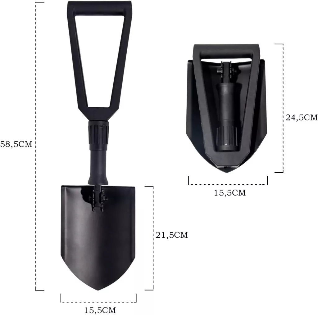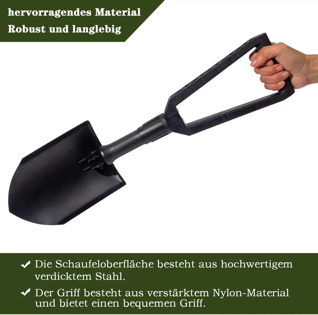 Táto skladacia záhradná lopata je dokonalou kombináciou profesionálnej kvality a praktickej prenosnosti. Čepeľ vyrobená z ocele 50# je mimoriadne pevná a odolná, zatiaľ čo ergonomický dizajn vystuženej nylonovej rukoväte zabezpečuje pohodlnú prácu. Skladacia konštrukcia umožňuje zložiť lopatu na rozmery len 18,5 x 27 cm, vďaka čomu sa ľahko skladuje v aute, batohu alebo v úložnom priestore.