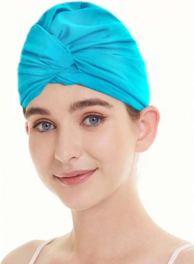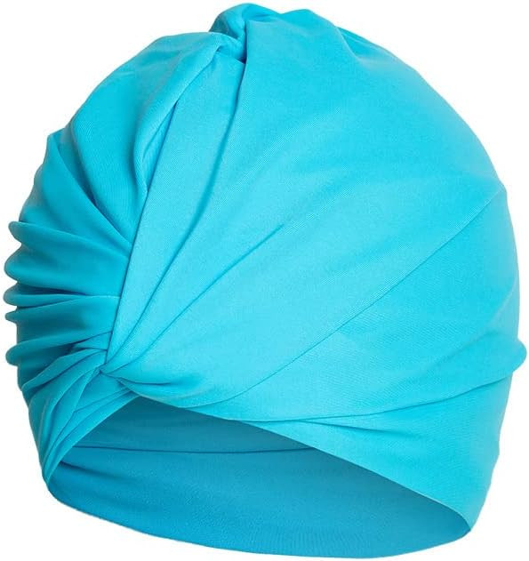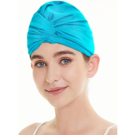 iNszkoos Női Úszósapka Tengerkék Turbán Stílusú Rugalmas Anyagból Fülvédő Funkcióval Hosszú Rövid Hajhoz Strand Úszás