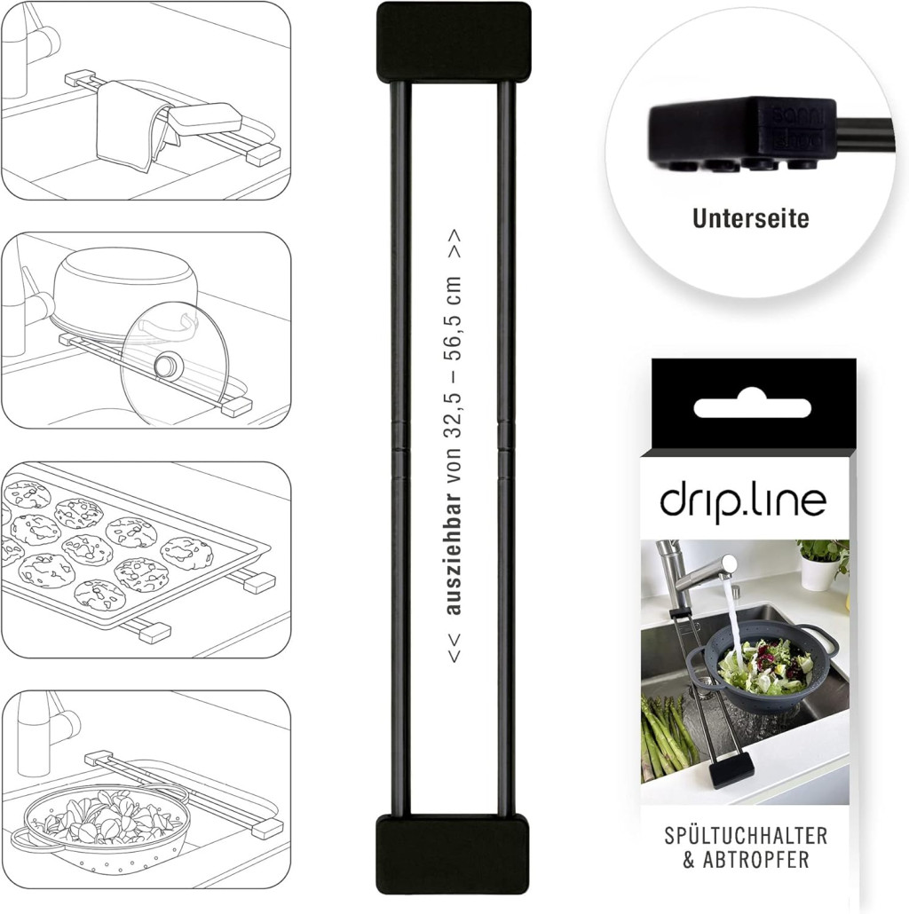 Sanni Shoo Držiak na handru na riad Čierny - Kuchynský organizér, Teleskopický stojan na hubku na riad, Flexibilný odkvapkávač na riad, Čierna nehrdzavejúca oceľ