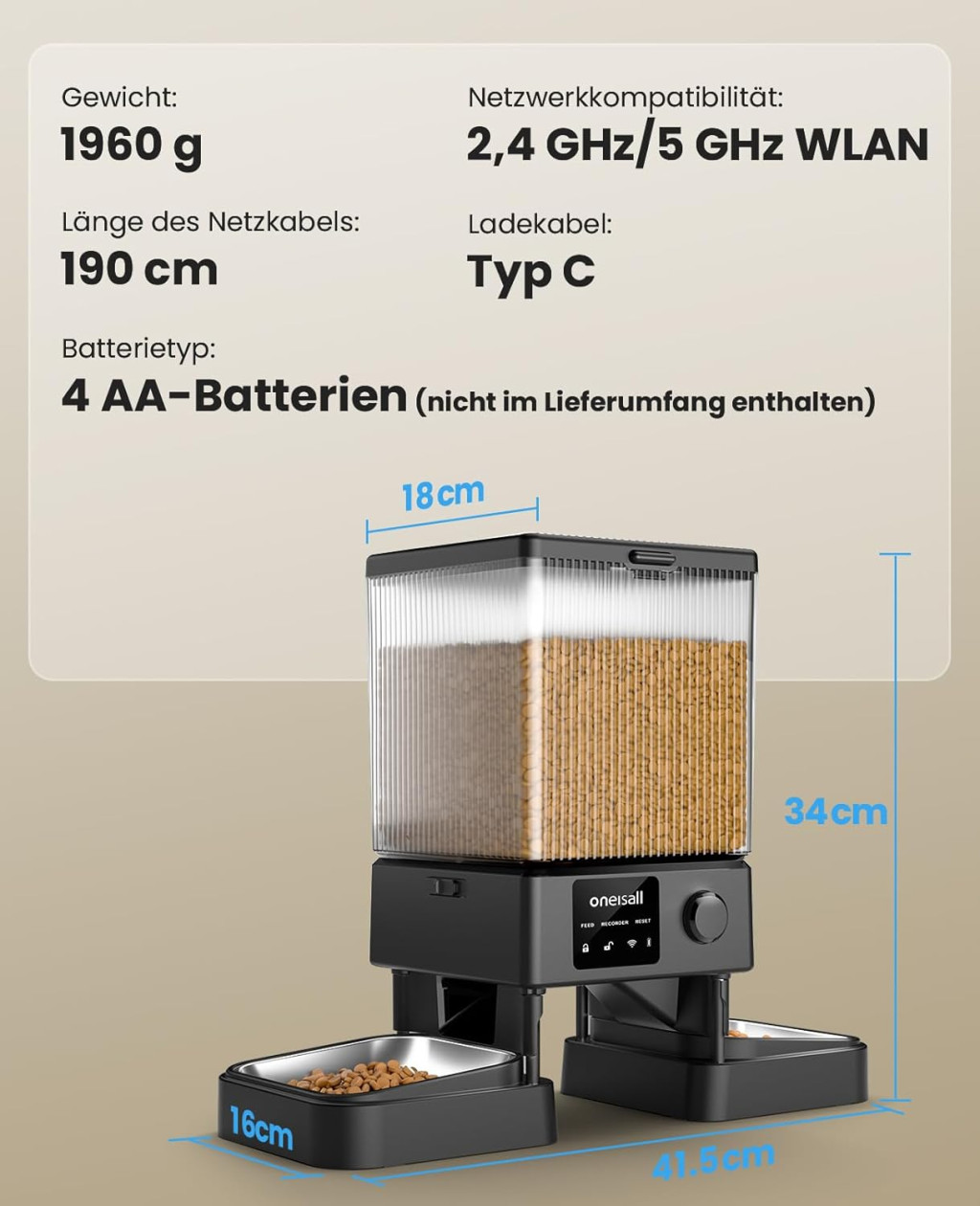 Az oneisall 5L automatikus macska etető egy kiváló választás azoknak, akik szeretnék biztosítani, hogy háziállatuk megfelelő és időben kapjon ételt. Az intelligens WiFi vezérlés, a precíz adagolás, a hangfelvétel funkció és a kétágyas kialakítás kombinációja ezt az etetőt a piacon egyedülálló megoldássá teszi.