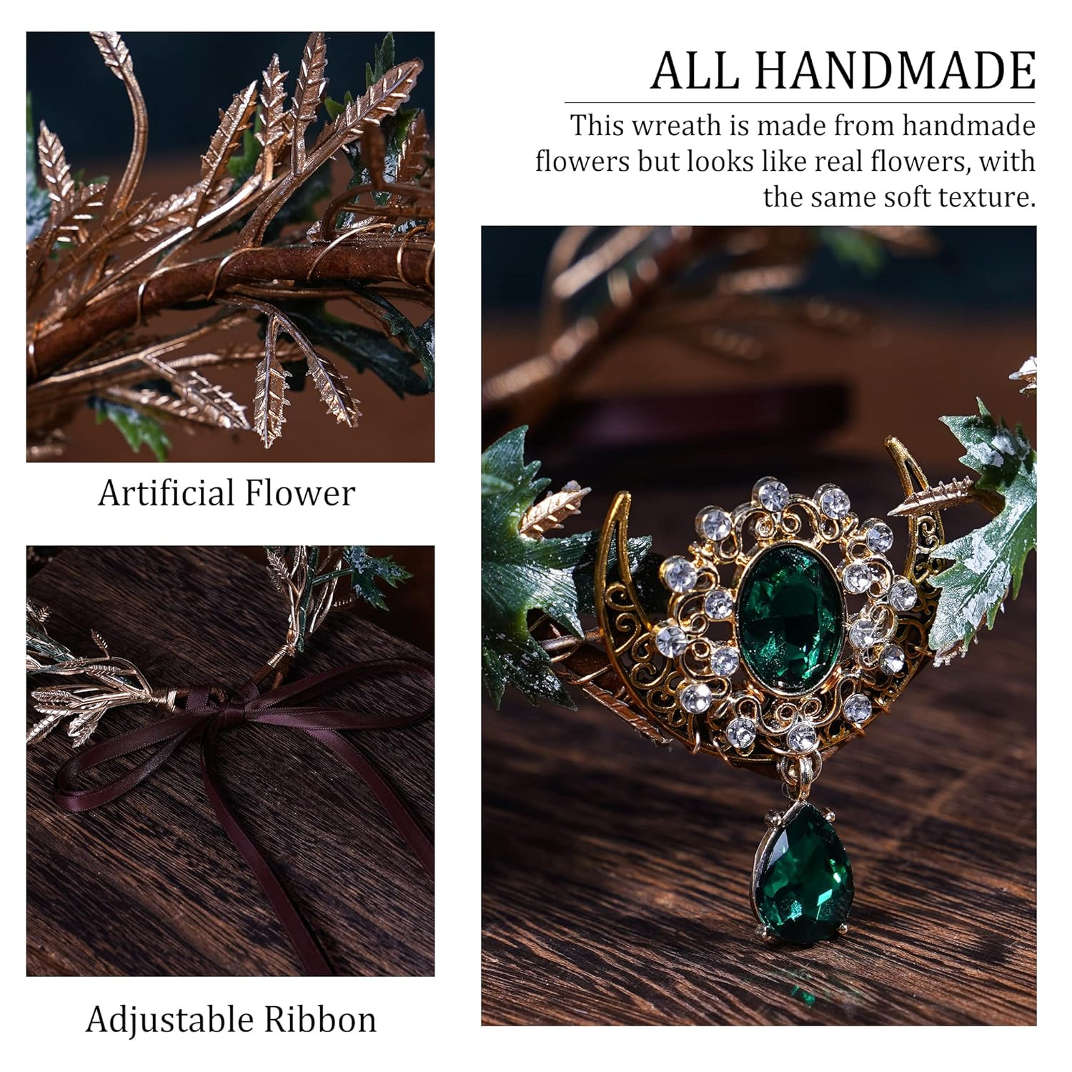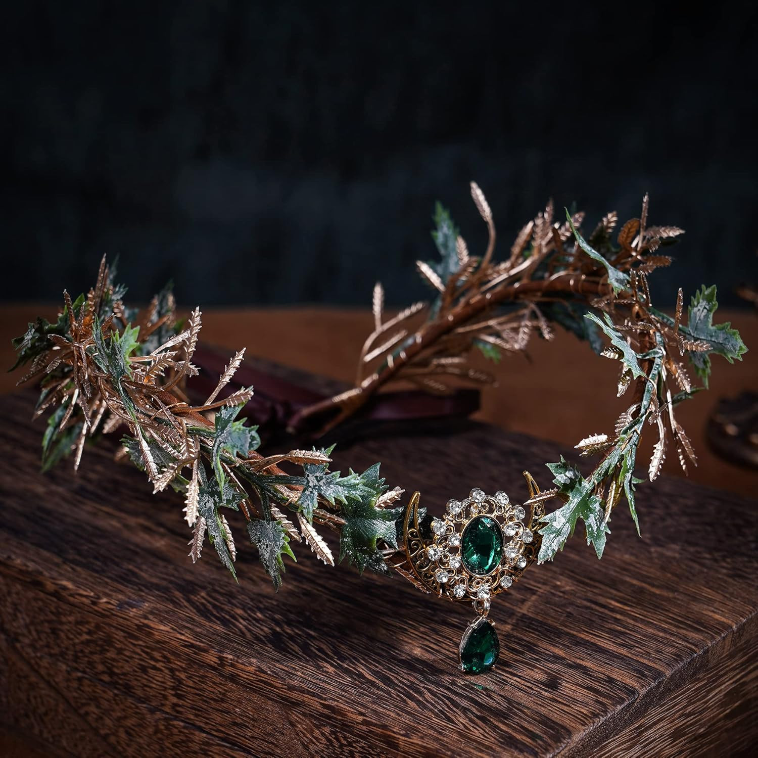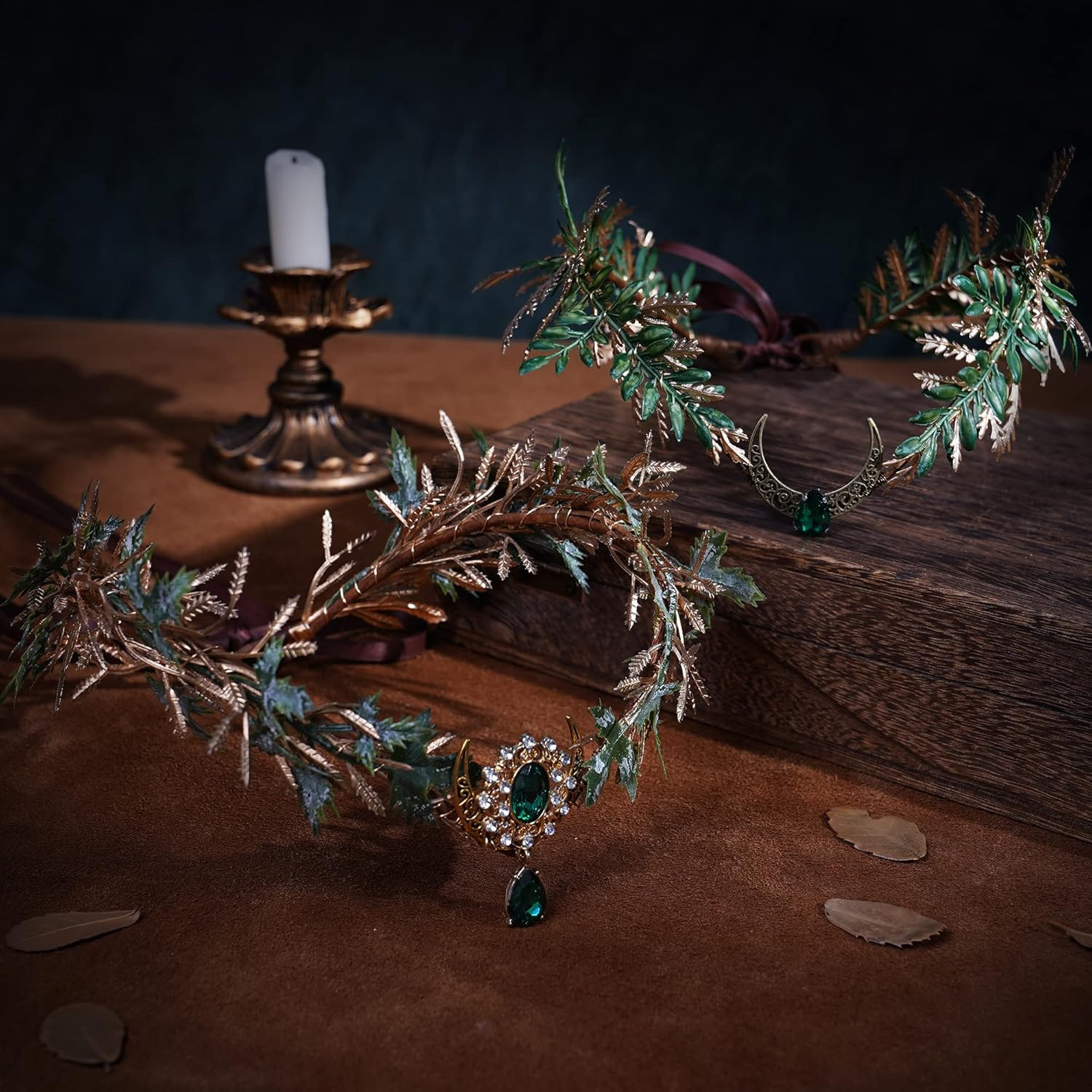 MOSTORY Elfia koruna listová čelenka kostým víly pre ženy stredoveký vavrínový veniec