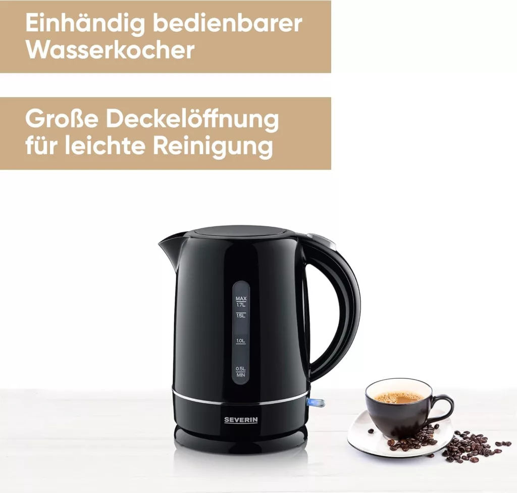 SEVERIN 1,7 literes vízforraló fekete, 2200W, kompakt, vízkőszűrő