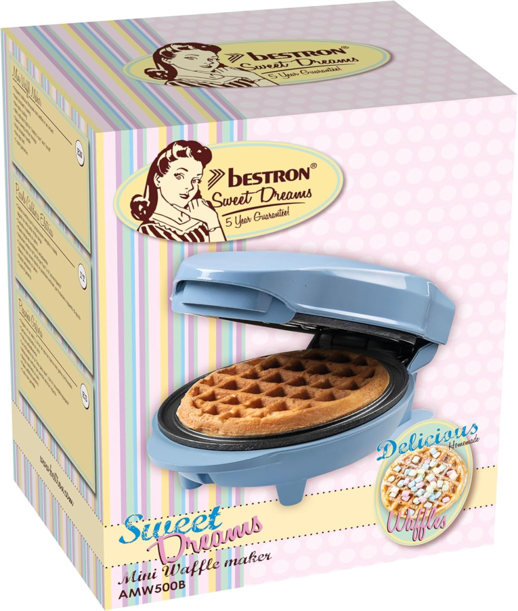 Bestron Mini Gofrisütő Klasszikus Gofrikhoz - 550W Retro Kék