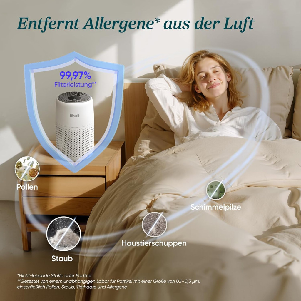 Levoit légszűrő allergia HEPA szűrő penész por háziállat szőr hálószoba fehér