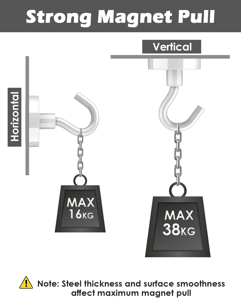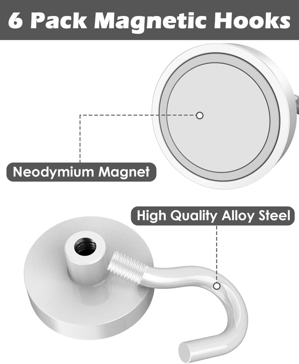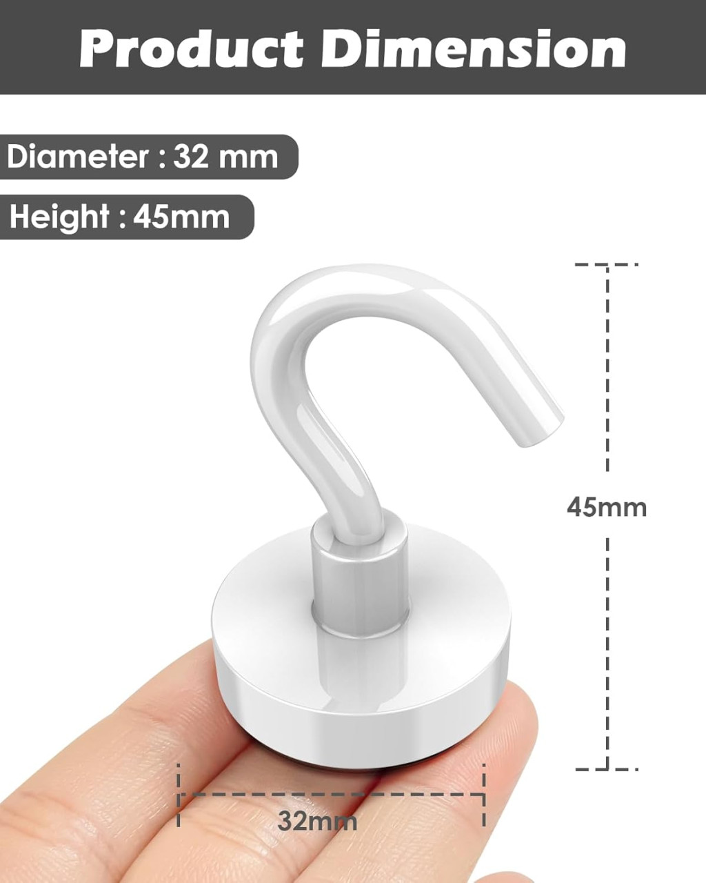 Anyag: A horogok magas minőségű neodímium mágnesből készülnek, amely kopásálló, rozsdamentes és korróziómentes. Ez biztosítja a hosszú élettartamot és a megbízható teljesítményt még kemény körülmények között is.