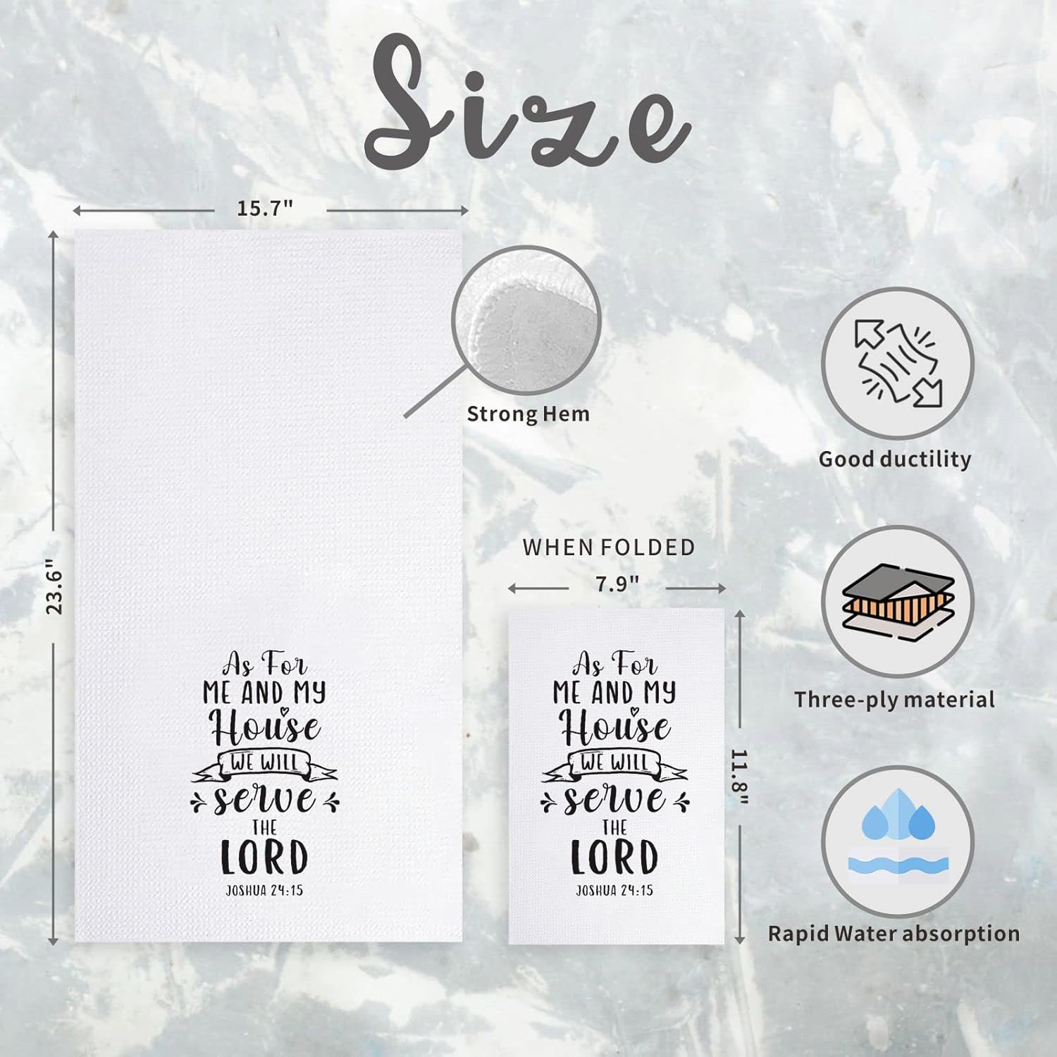 - ✝️ Inšpiratívne biblické citáty: Dva rôzne biblické verše s hlbokým významom zdobia utierky a poskytujú dennú inšpiráciu