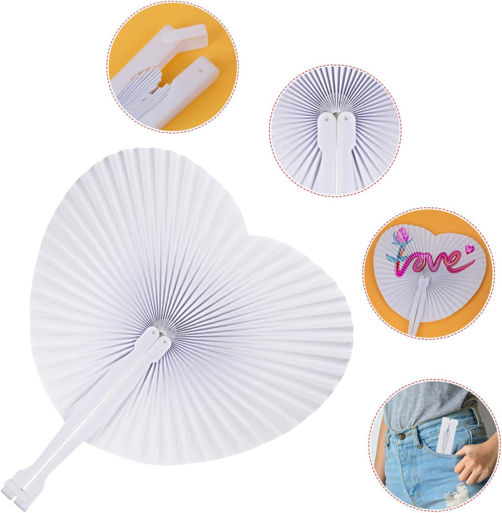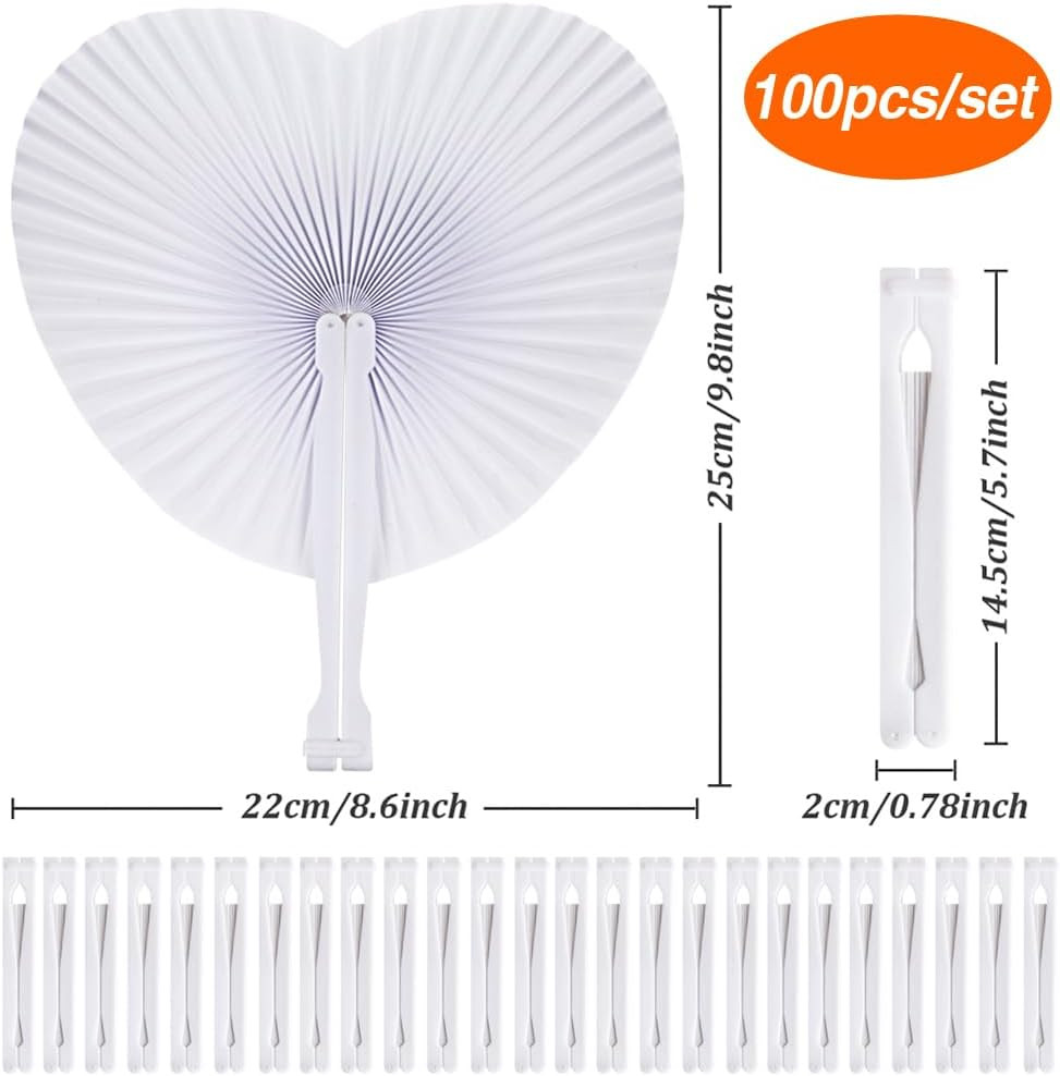 SXUUXB 100 db Esküvői Papír Legyező Fehér Kézilegyező Szív Alakú Összecsukható Legyező Esküvőre Ajándék Dekoráció Születésnap Parti