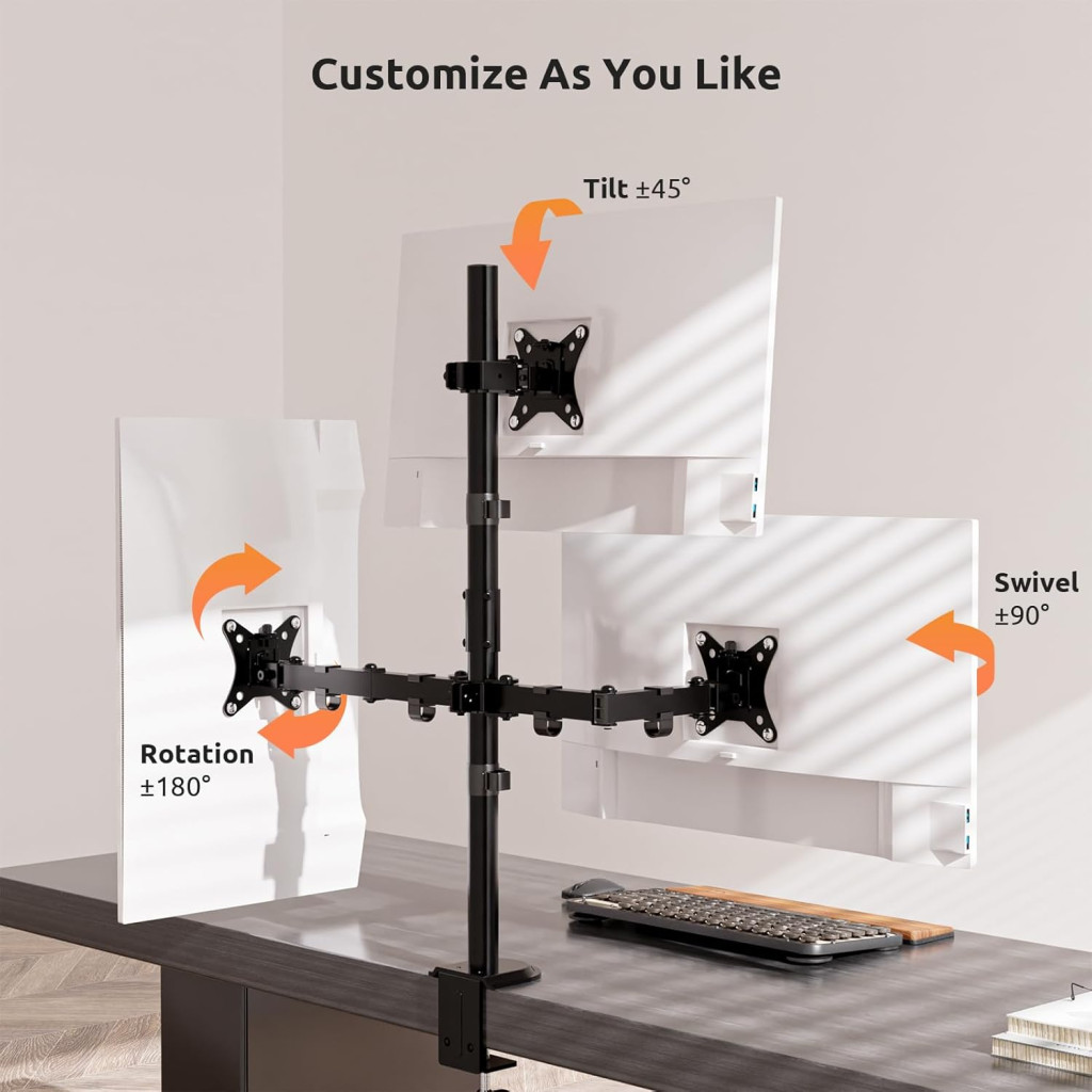 Professzionális gamer setup-hoz ideális, több monitor egyidejű használatához, optimális nézési szögek biztosítása.