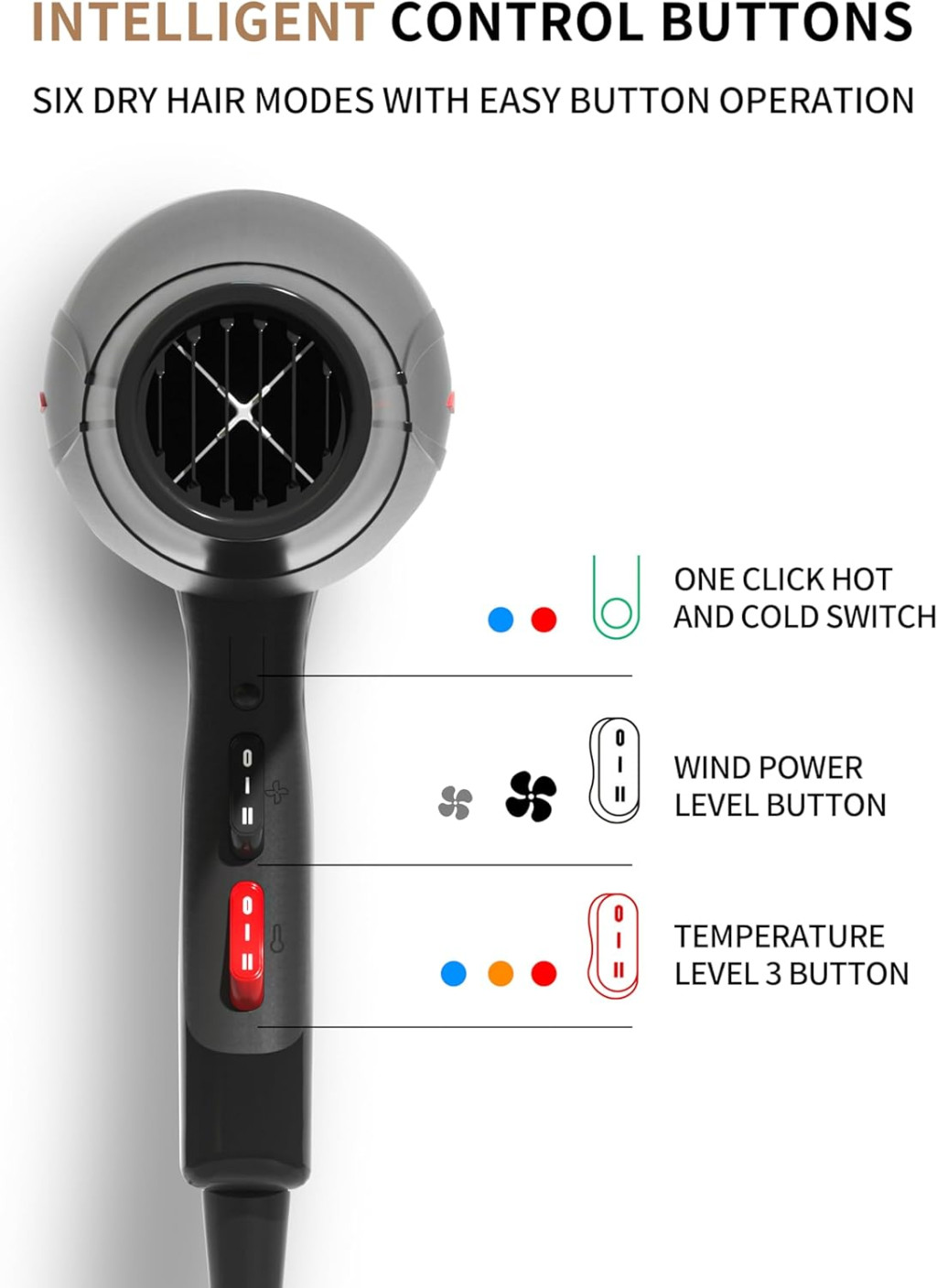 - Výkon 2400 W: Výkonný AC motor, ktorý rýchlo a efektívne suší mokré vlasy