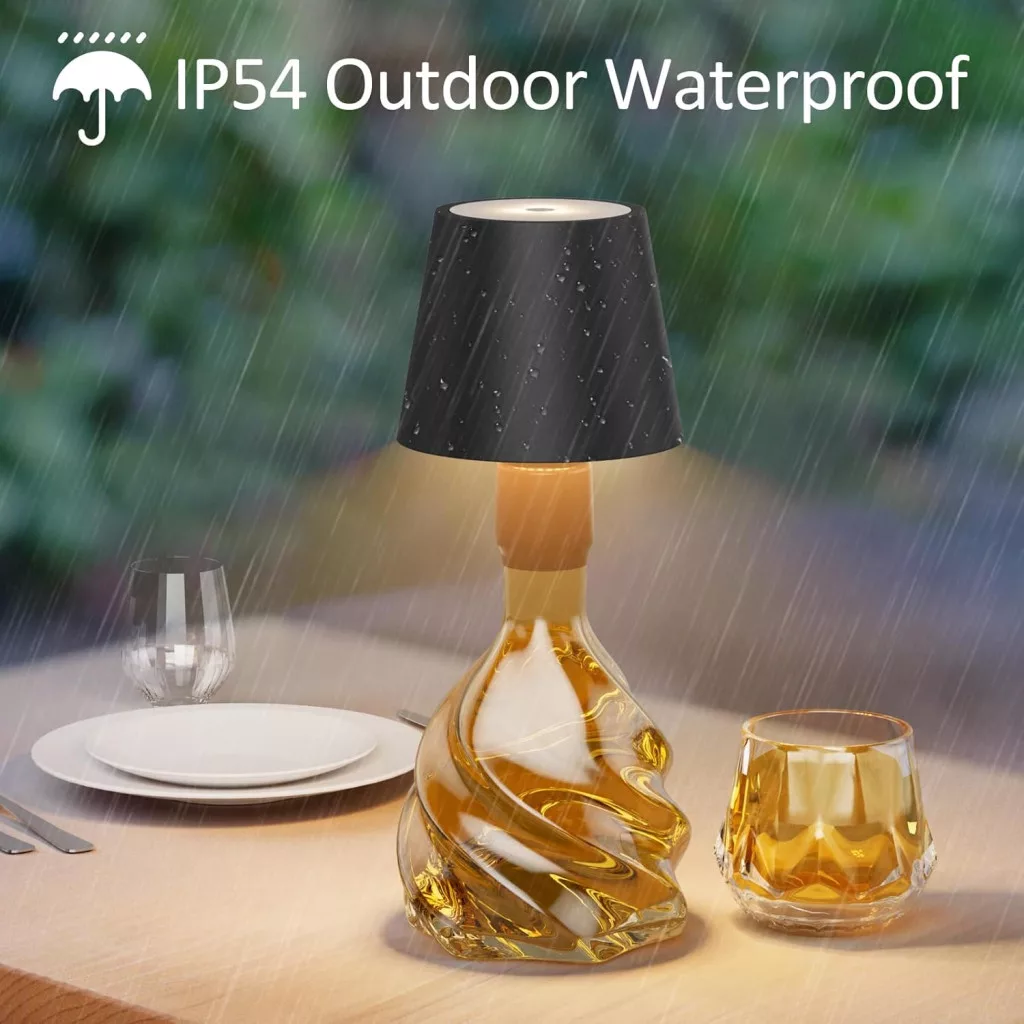 K-Bright LED Fľaša Lampa - Nabíjateľná, Dotykové ovládanie, Stmievateľná Stolná Lampa, 5200 mAh, IP54 Vodotesná, Interiér-Exteriér, 3000K