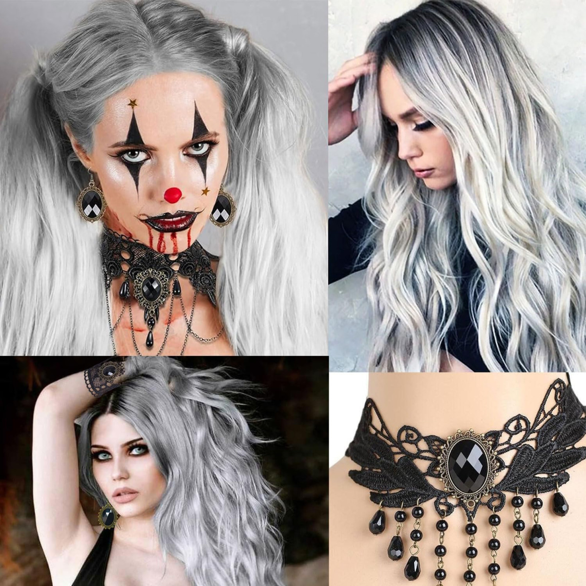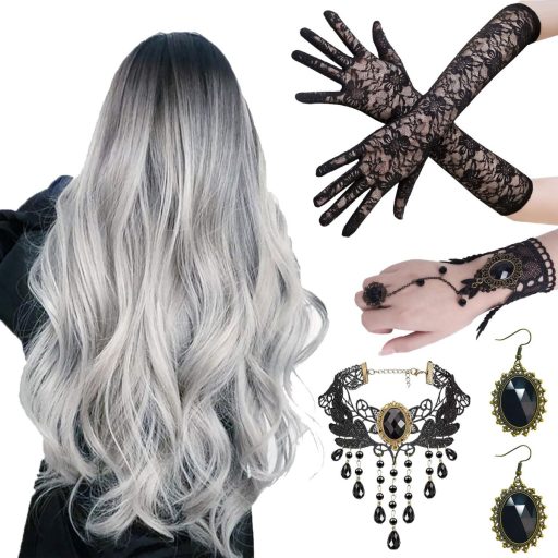 Halloween Paróka Szürke Nőknek - Hosszú Ezüstszürke Ombre Paróka