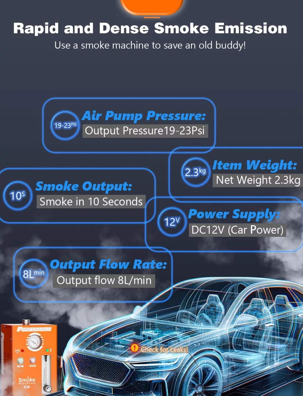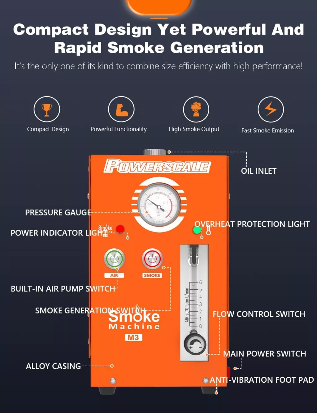 PowerScale M3 Autó Füstgép Beépített Légpumpával, Szivárgásérzékelő 12V Járművekhez