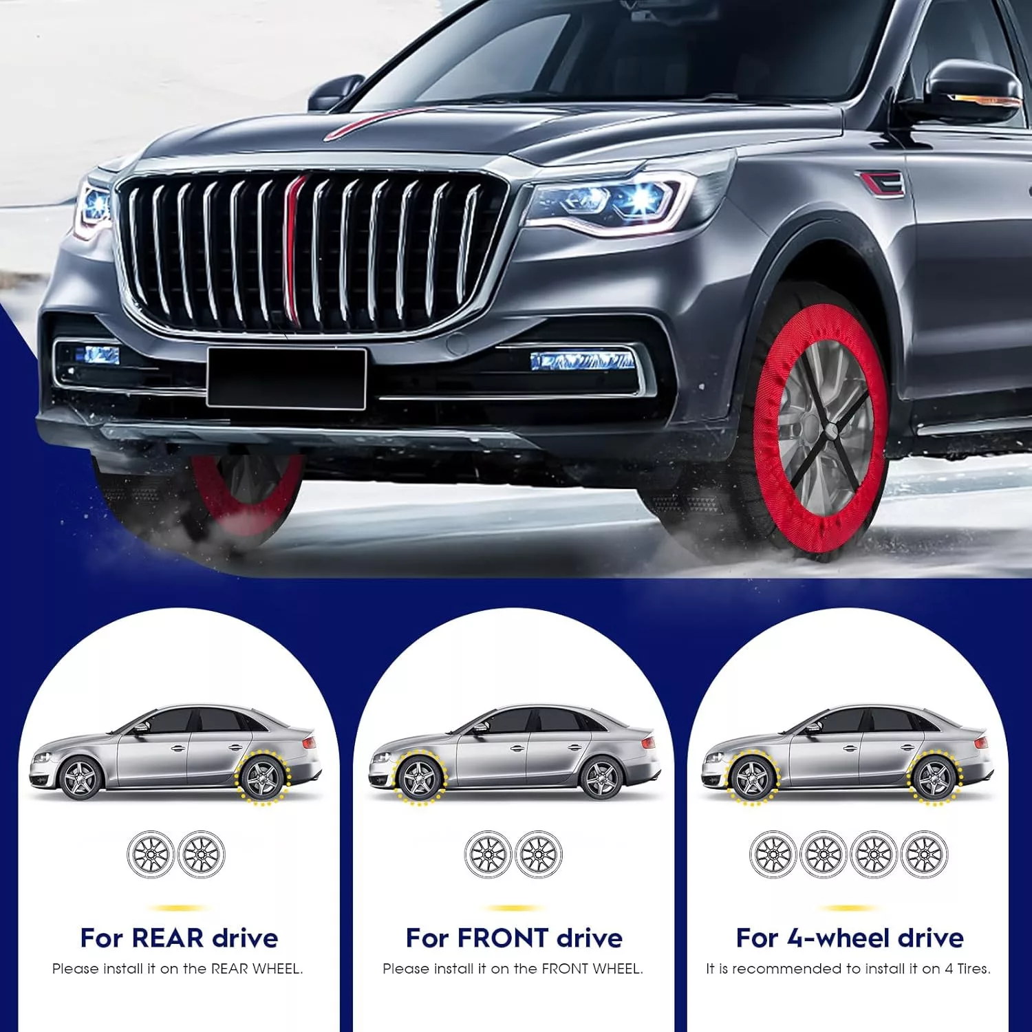 Vďaka univerzálnemu dizajnu produktu ho možno použiť pre väčšinu vozidiel, ale pred kúpou vždy skontrolujte rozmer pneumatík, aby ste si vybrali správnu veľkosť. Veľkosť XL je špeciálne navrhnutá pre väčšie pneumatiky, čím zaisťuje dokonalé prispôsobenie a fungovanie.