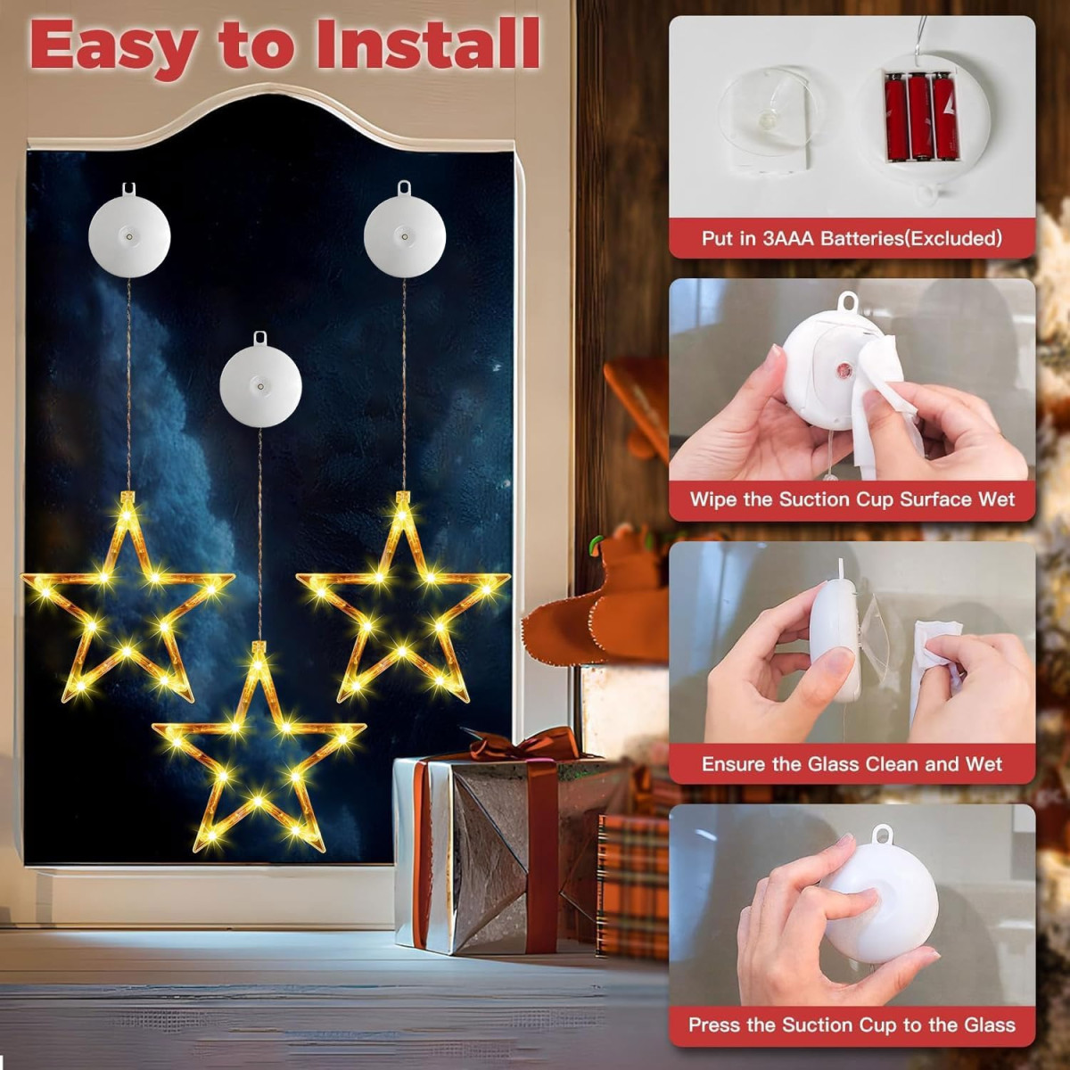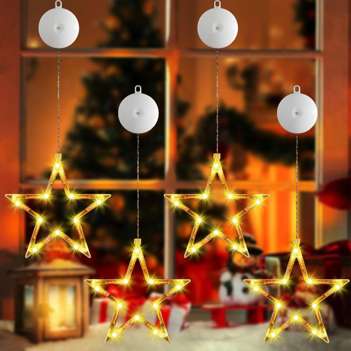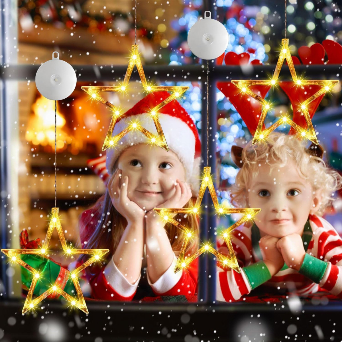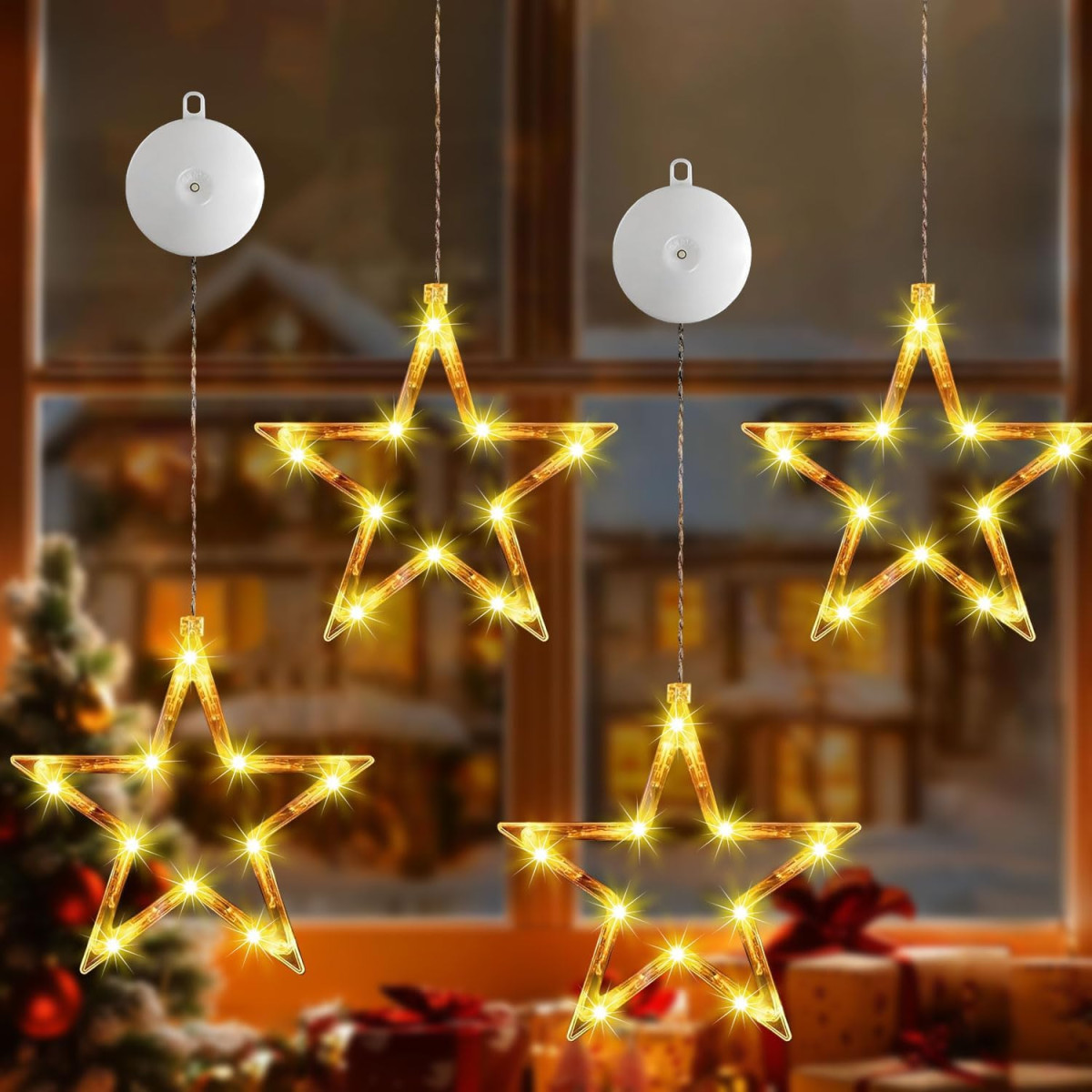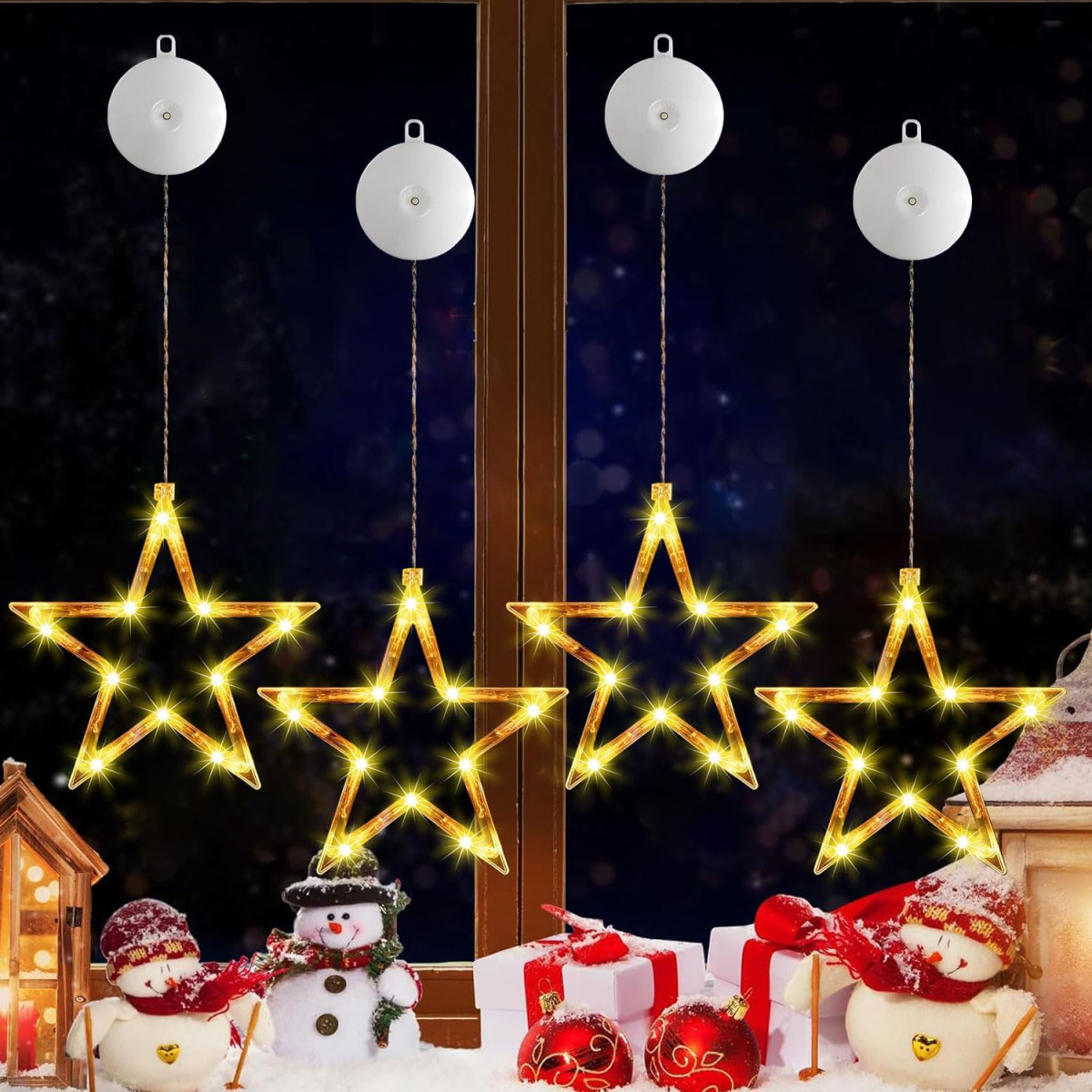 LED Vianočná Dekorácia na Okno v Tvare Hviezdy - Súprava 4 Kusov ✨ Prehľad produktu