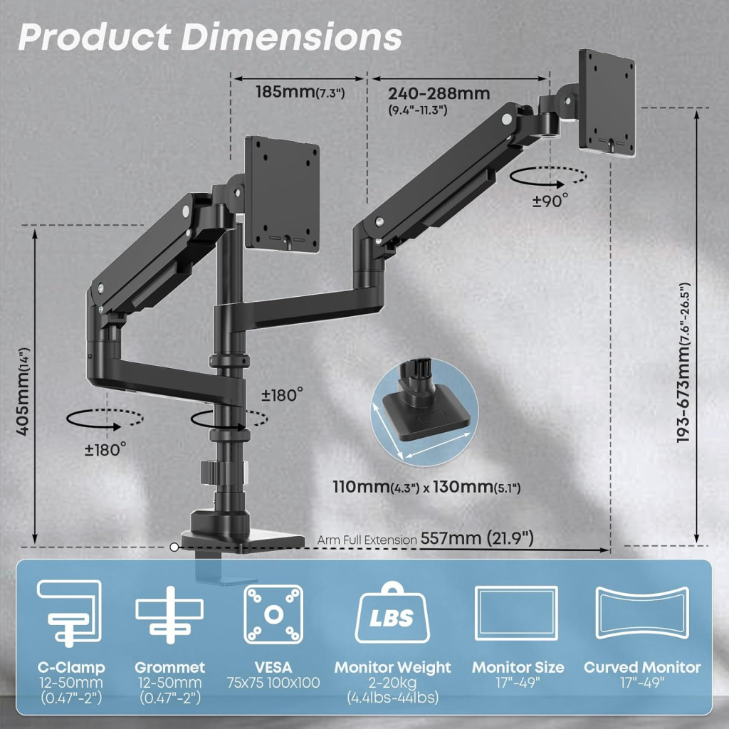 A PUTORSEN Dual Monitor Mount egy professzionális megoldás azok számára, akik nagyobb termelékenységre és ergonomikus munkakörnyezetre vágynak. Ez a robusts monitor tartó két monitort képes biztonságosan tartani, akár 49 hüvelykes képernyőket is. Az integrált gázrugós kar lehetővé teszi a könnyű magasság- és szögbeállítást, míg a prémium alumínium és acél szerkezet garantálja a hosszú élettartamot és stabilitást.