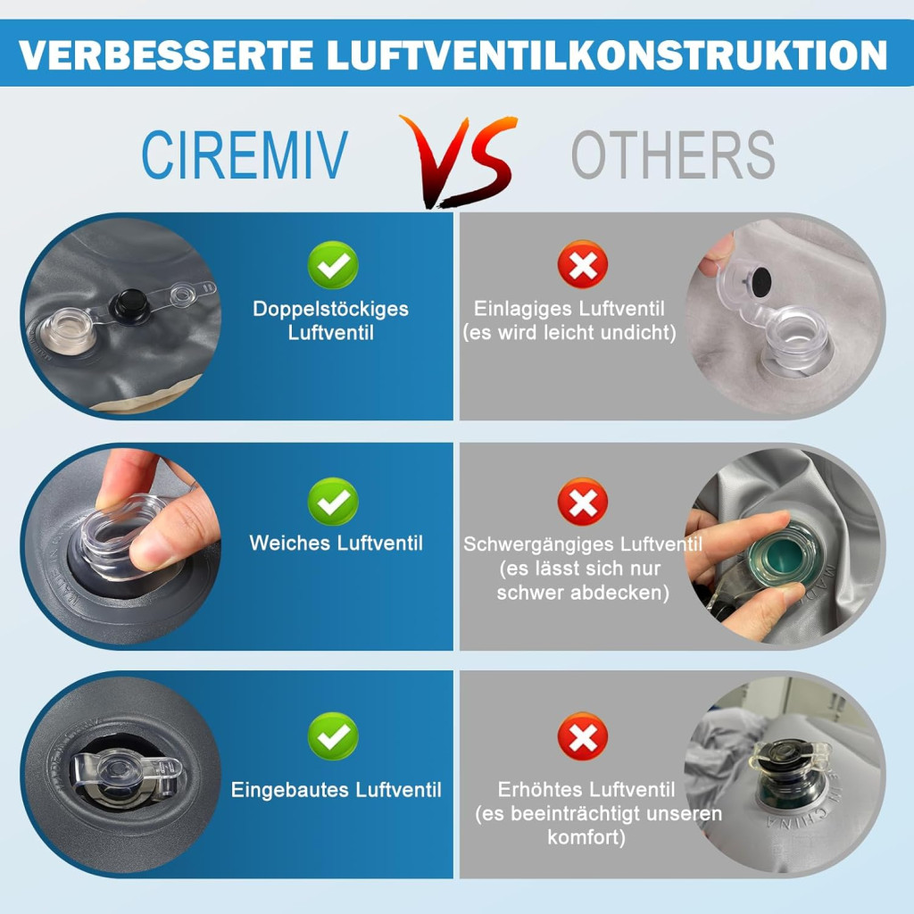 A Ciremiv autós matrac versenytársaival összehasonlítva kiemelkedik a komplett kiegészítő csomagjával. Míg más márkáknál külön kell megvásárolni a párnákat, pumpát vagy napellenzőket, itt minden egy csomagban érkezik. A matrac anyagminősége és a légkamrás szerkezet szintén felülmúlja a hasonló árkategóriájú termékeket.