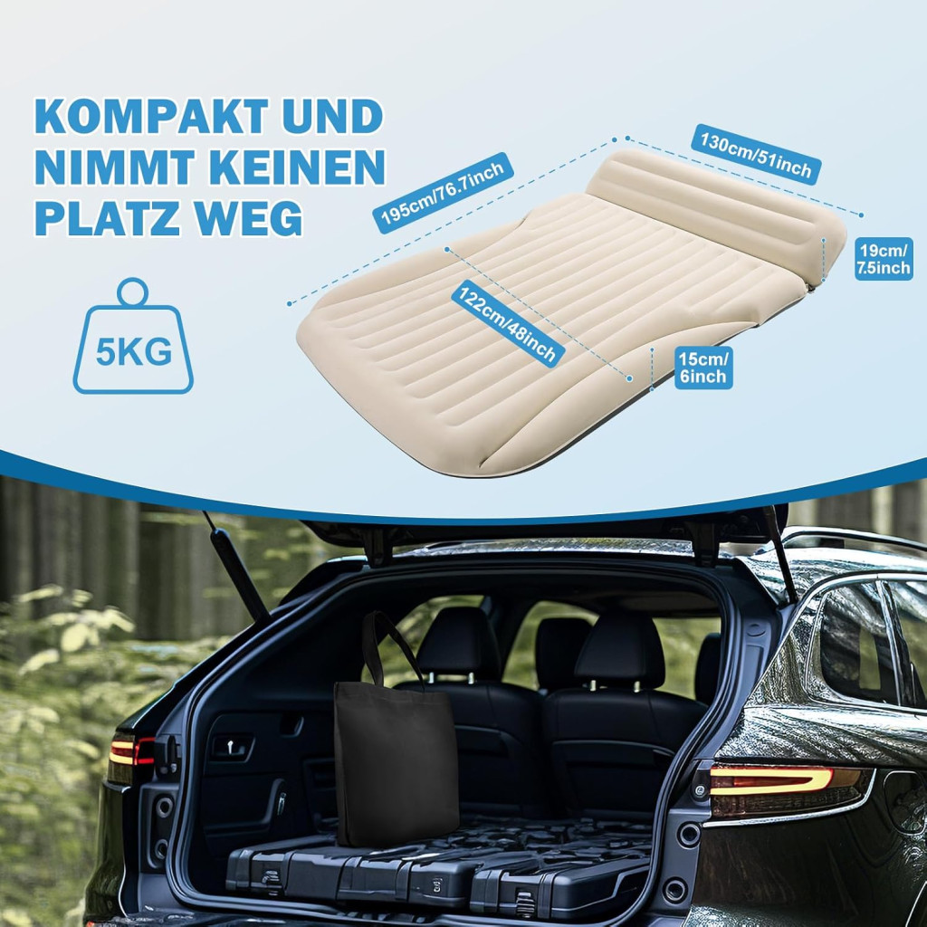 A 195 x 130 cm-es méret biztosítja, hogy a legtöbb járműben kényelmesen elférjen, miközben a 15 cm-es vastagság kellő távolságot biztosít a csomagtartó kemény felületétől. A matrac súlya mindössze 4 kg, így könnyen mozgatható és tárolható, amikor nincs használatban.