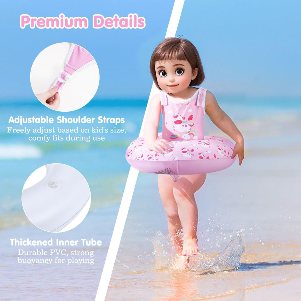 HeySplash Gyerek Úszómellény 3-6 Éveseknek, Állítható Vállpánt, Úszástanuló Segédeszköz 13-25 kg, Rózsaszín Unikornis Mintás