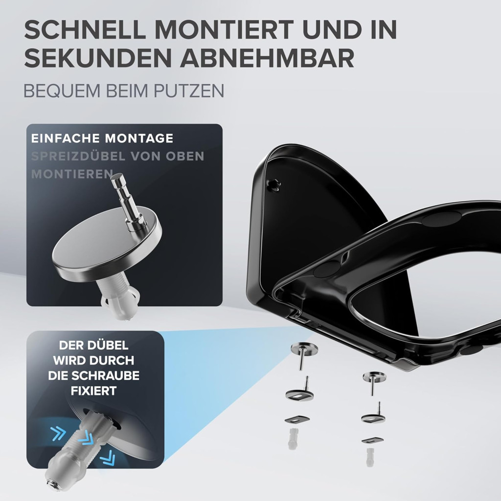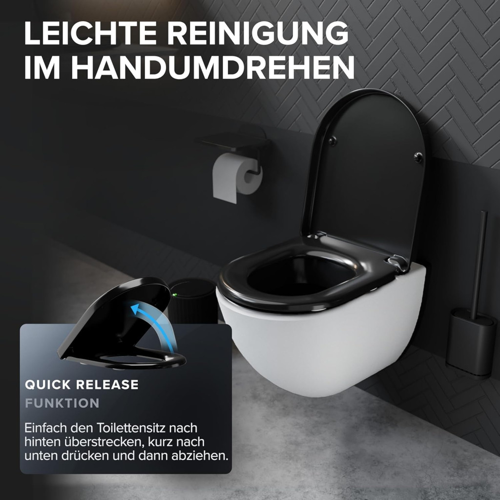 Ovimar WC sedadlo v tvare D, čierny duroplast so systémom soft-close