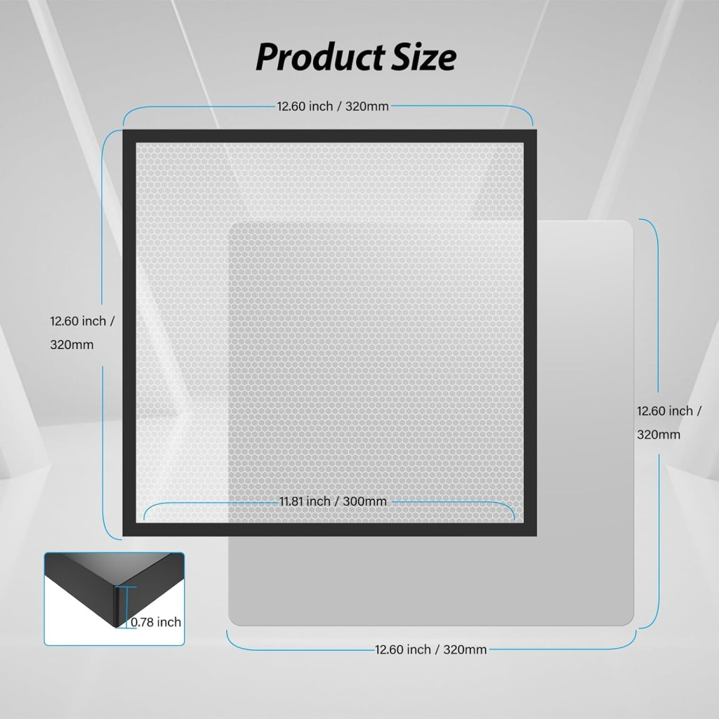 • Rozmer 320x320 mm: Ideálna veľkosť pre väčšinu laserových strojov (12,6x12,6 palca)