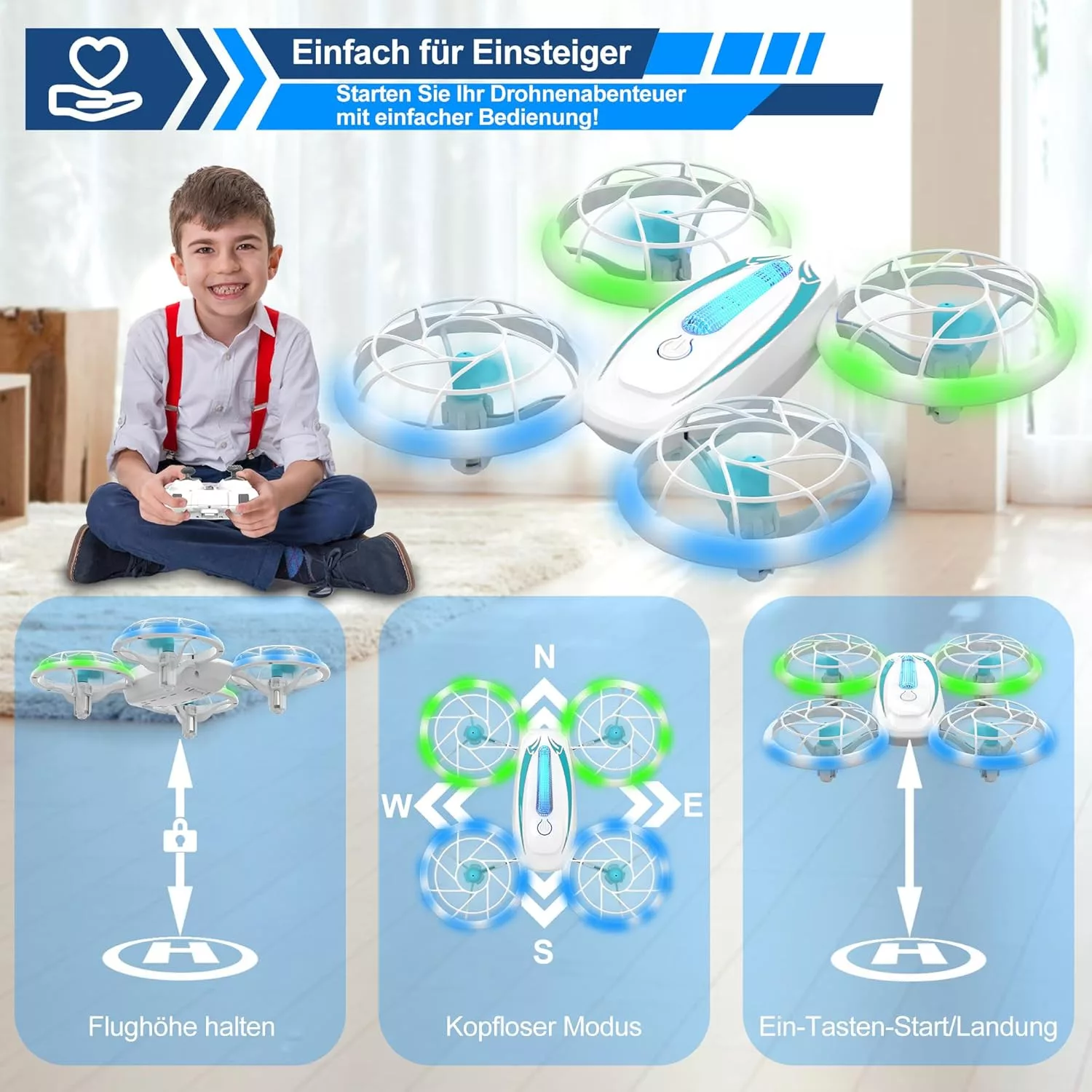 • 360°-os forgás és egyetlen gombos fel-/leszállás
