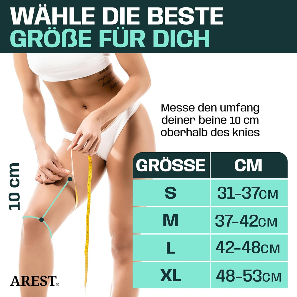 Az AREST térdtámasz S méretben érhető el, amely ideális a kisebb és közepes méretű térdekhez. A termék univerzálisan használható férfiak és nők számára egyaránt. Az állítható kompressziós sáv biztosítja, hogy a támasz tökéletesen illeszkedjen az egyéni igényekhez és testalkathoz.