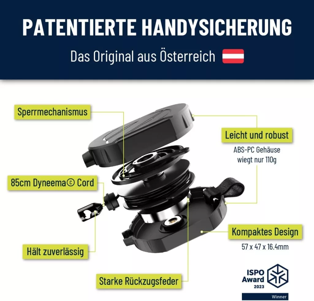 REELOQ PRO nie je len obyčajný držiak na telefón – je to kompletný bezpečnostný systém, ktorý je symbolom rakúskej inovácie a prémiovej kvality. Ocenenie ISPO Award dokazuje, že tento produkt je vo svojej kategórii na trhu najlepší. Jednoduchá montáž, univerzálna kompatibilita a spoľahlivý výkon z neho robia ideálnu voľbu pre každého, kto berie bezpečnosť svojho telefónu vážne.